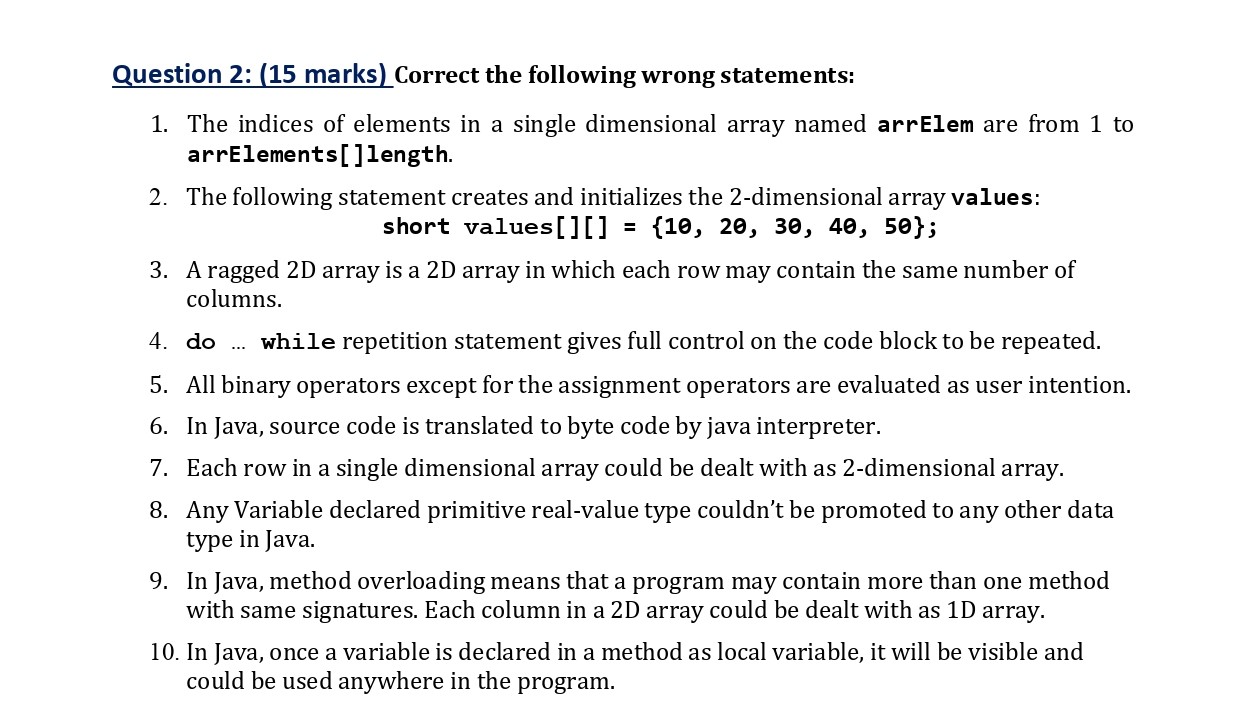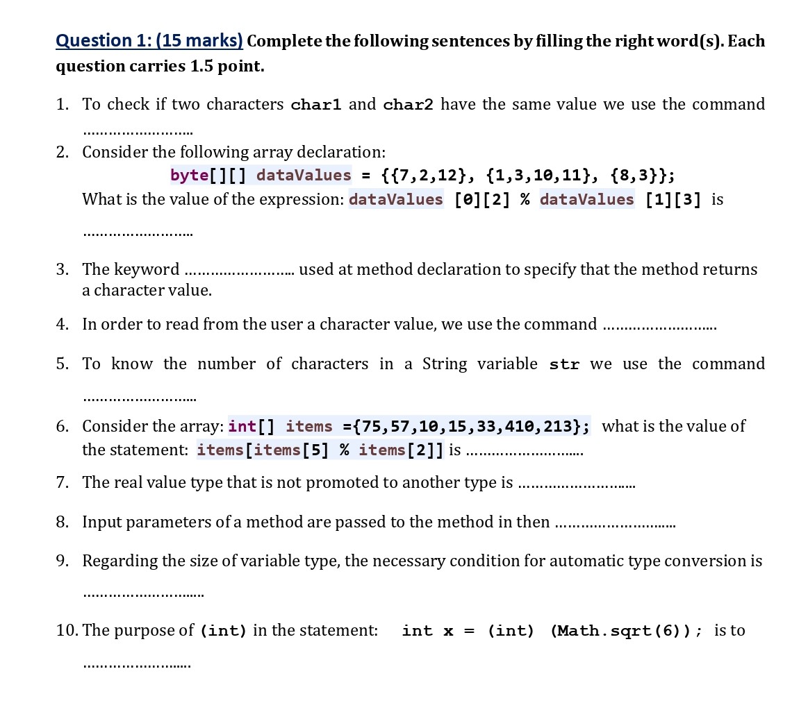 Question 1: (15 marks) Complete the following sentences by filling ...