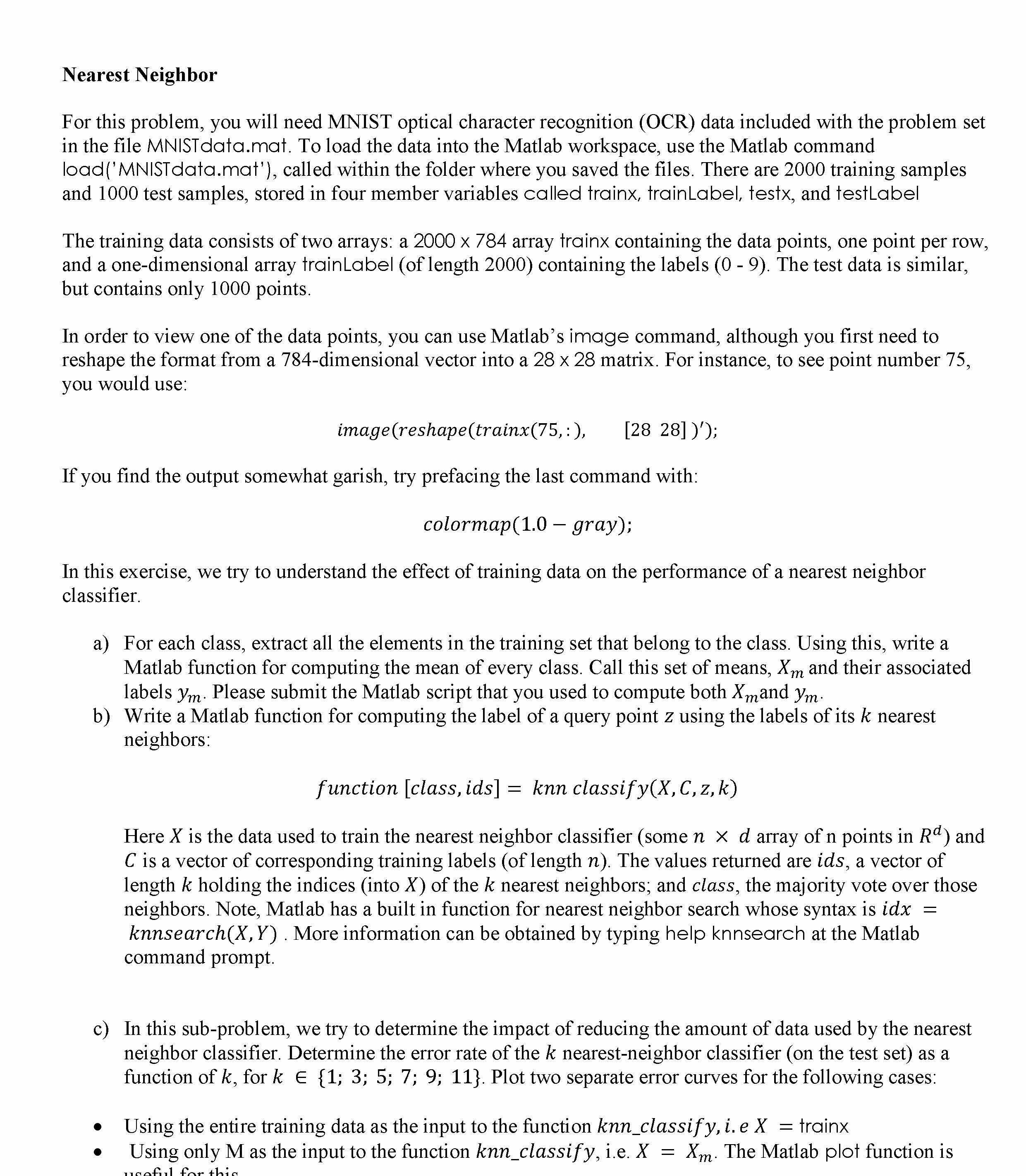 Nearest Neighbor For this problem, you will need MNIST optical cha...