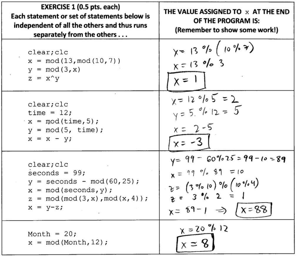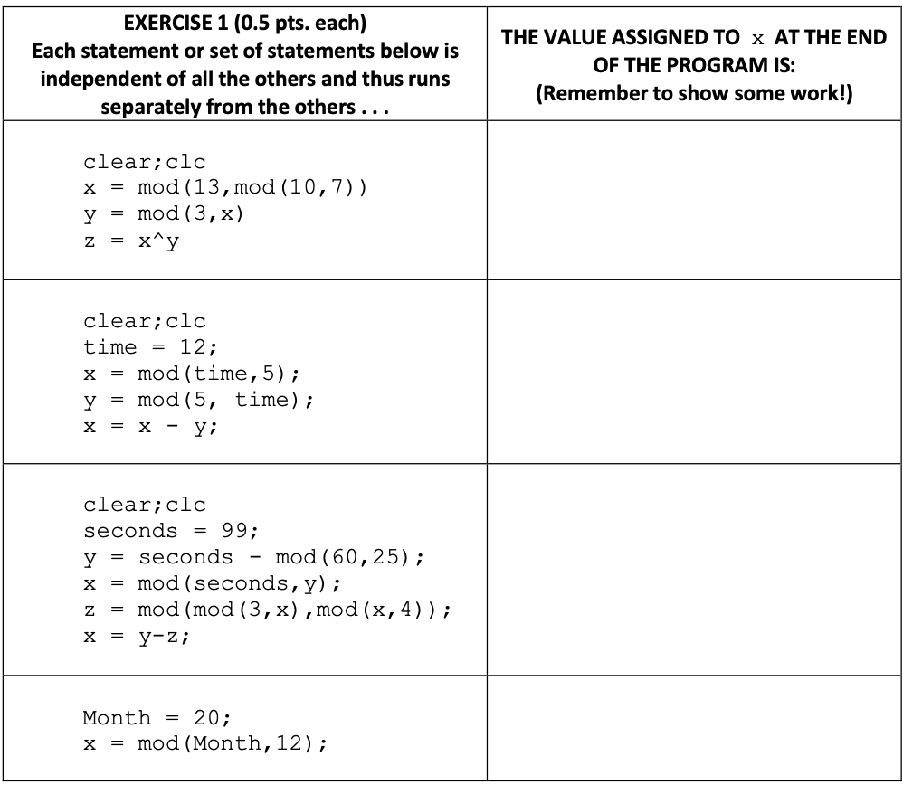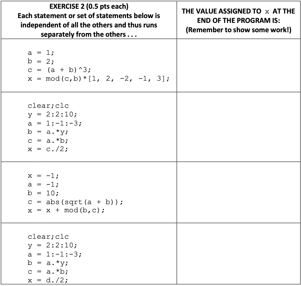 EXERCISE 1 (0.5 pts. each) THE VALUE ASSIGNED TO X AT THE END Eac...