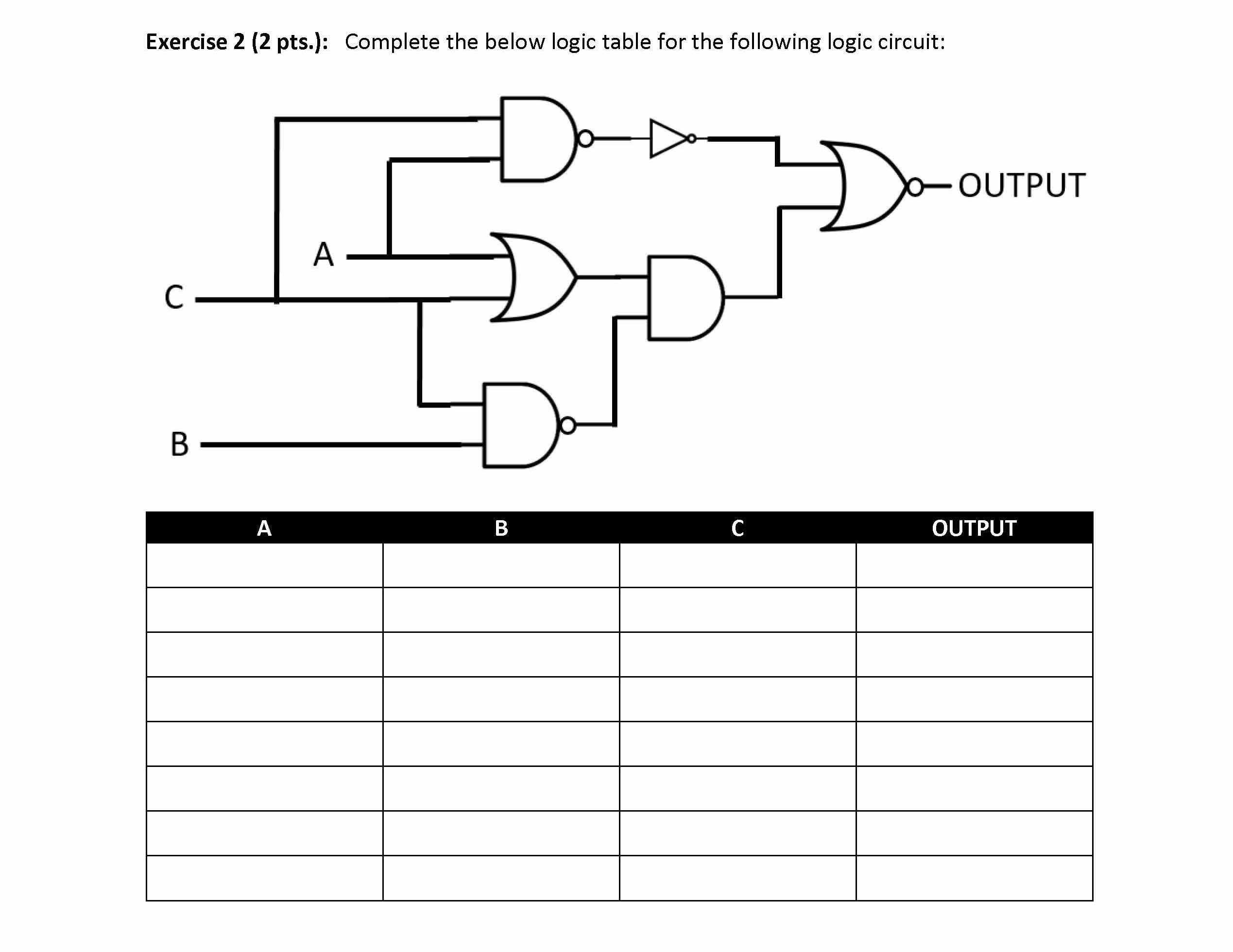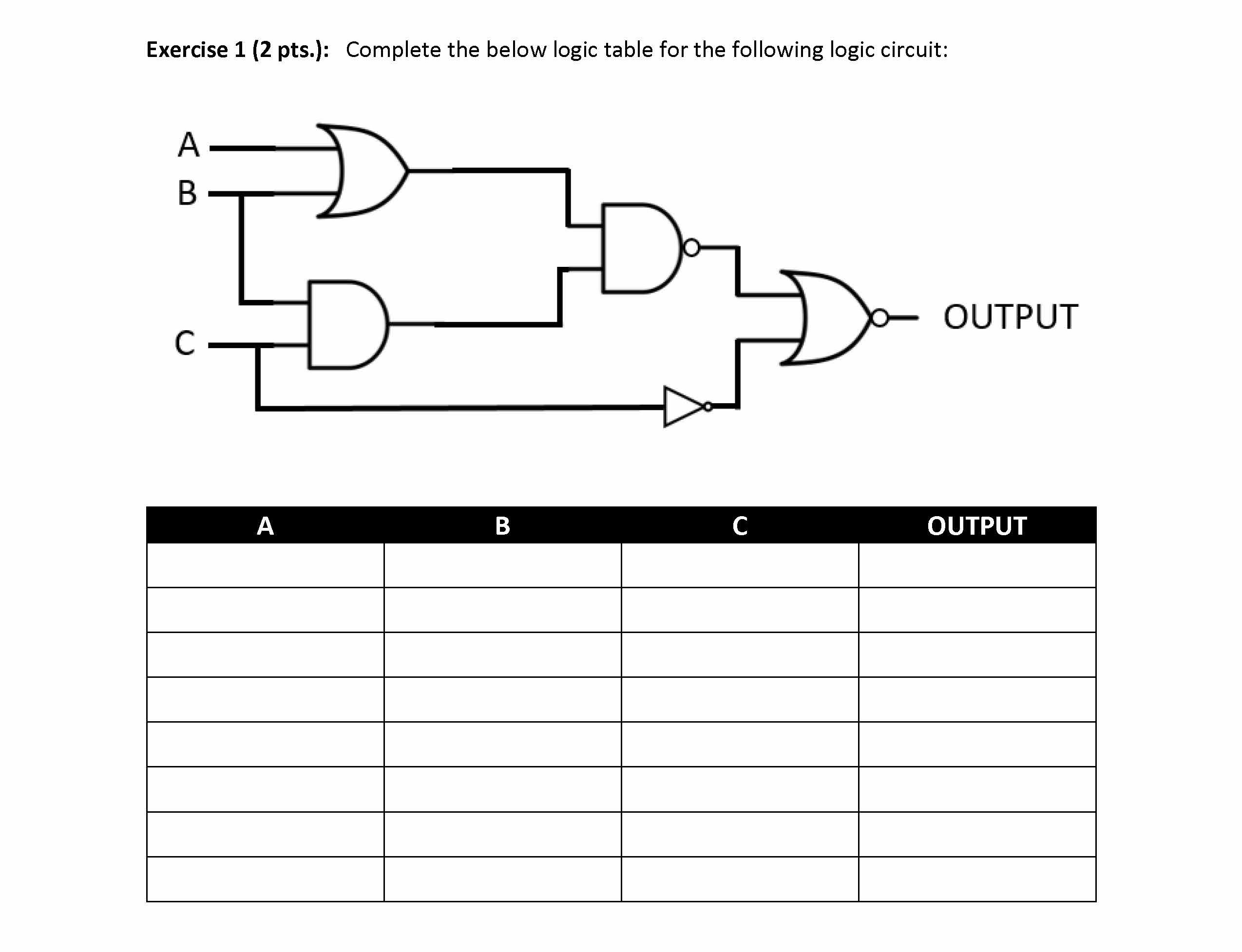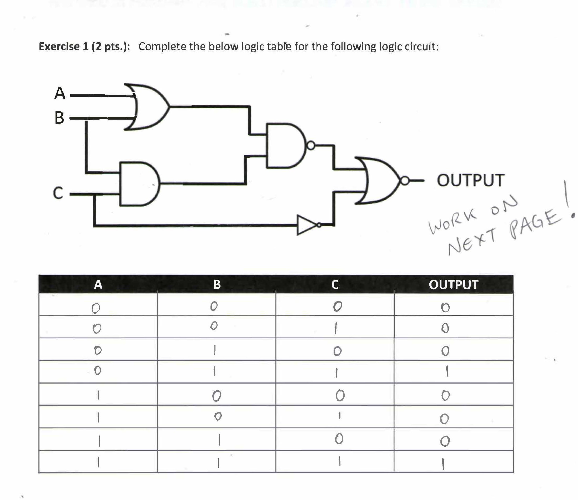 Exercise 1 (2 pts.): Complete the below logic table for the followi...