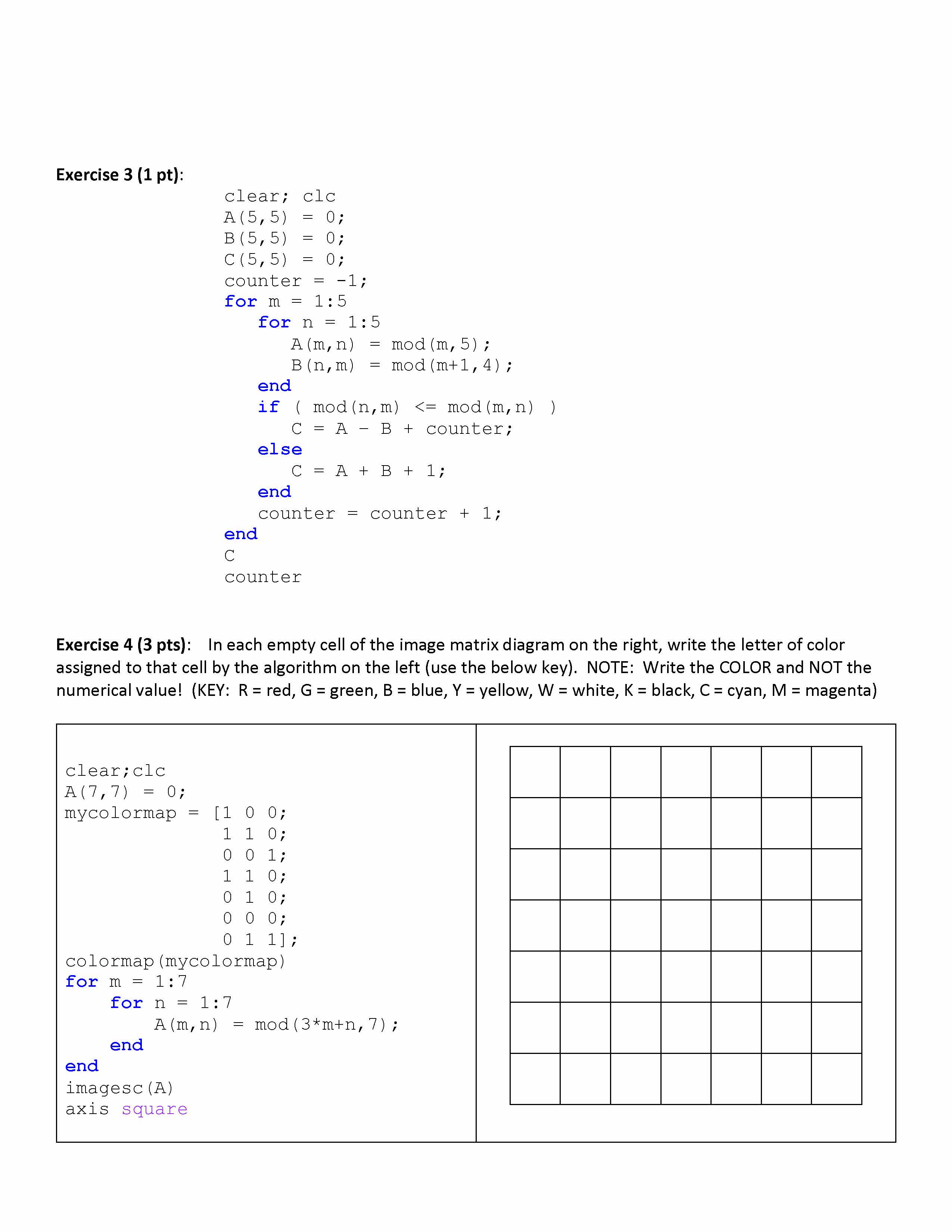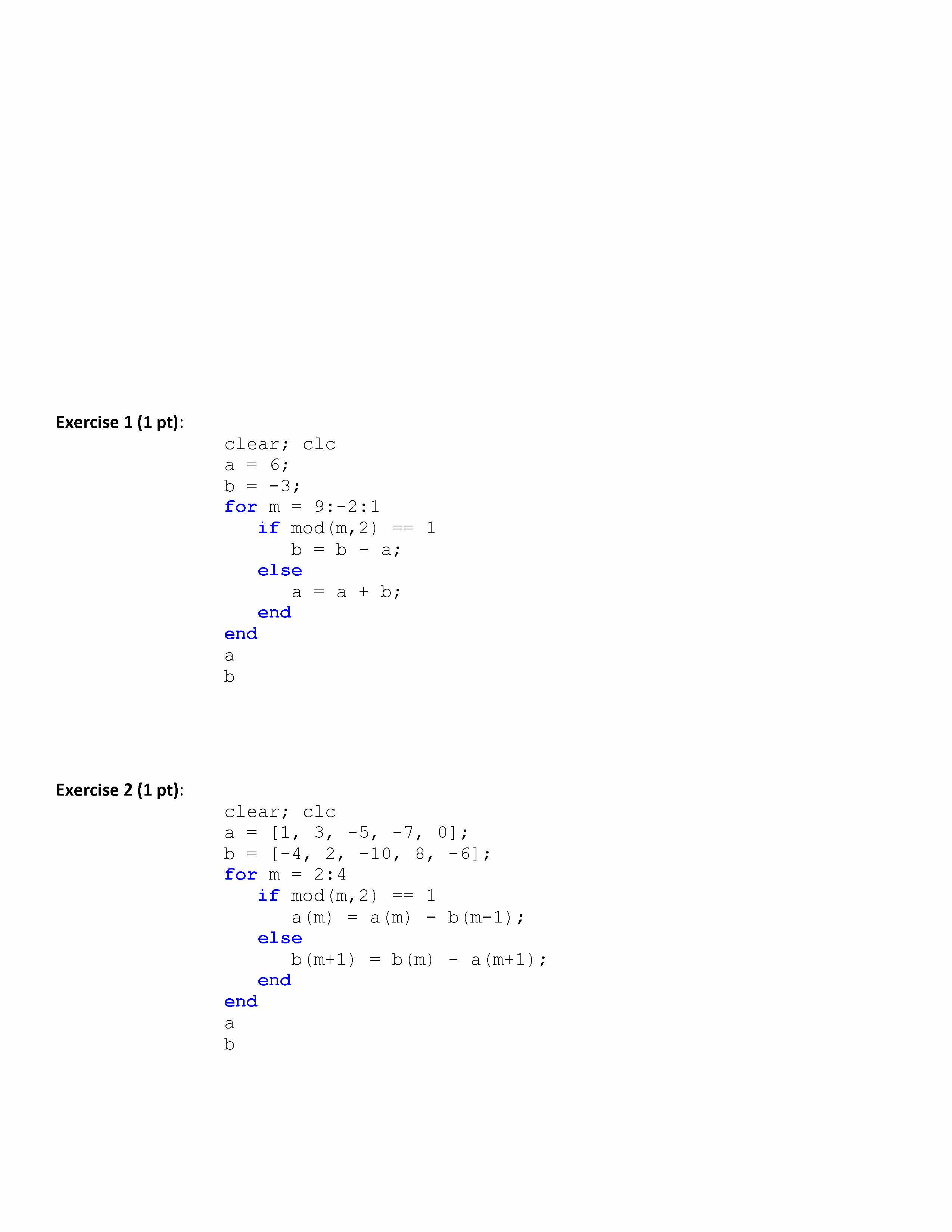 Exercise 1 (1 pt): clear; clc a = 6; b = - 3; for m = 9:-2:1 i...