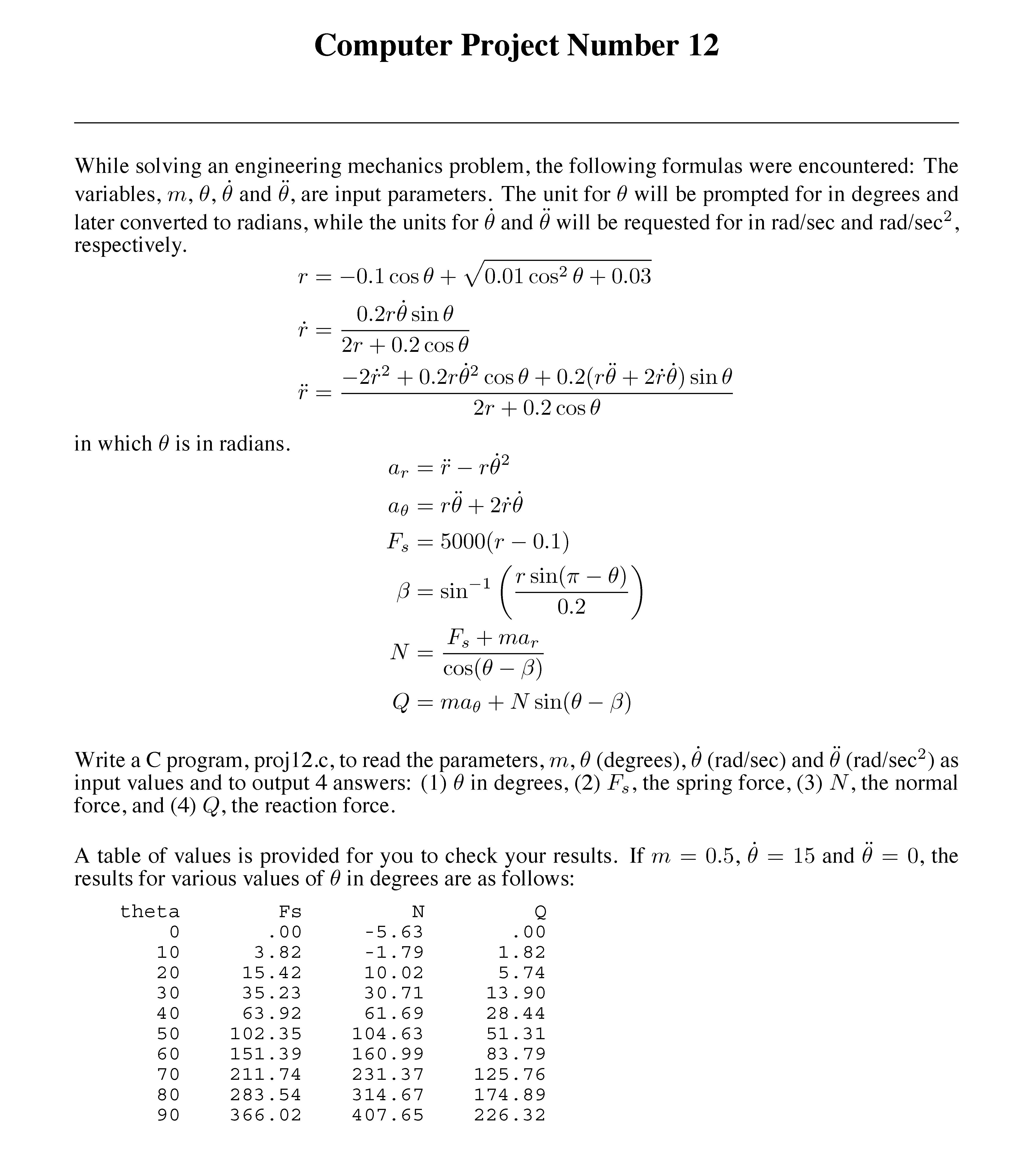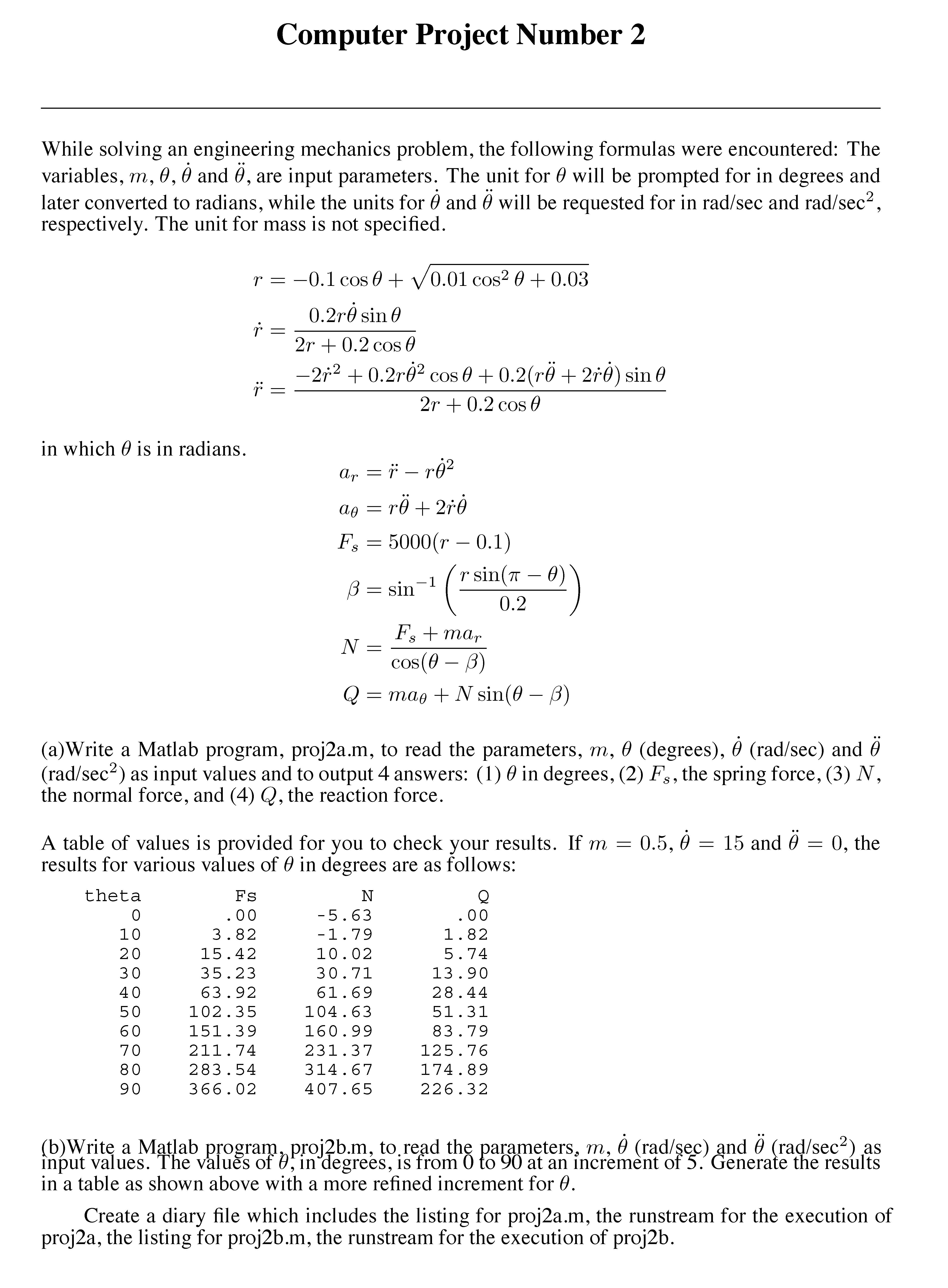 Computer Project Number 2 While solving an engineering mechanics ...