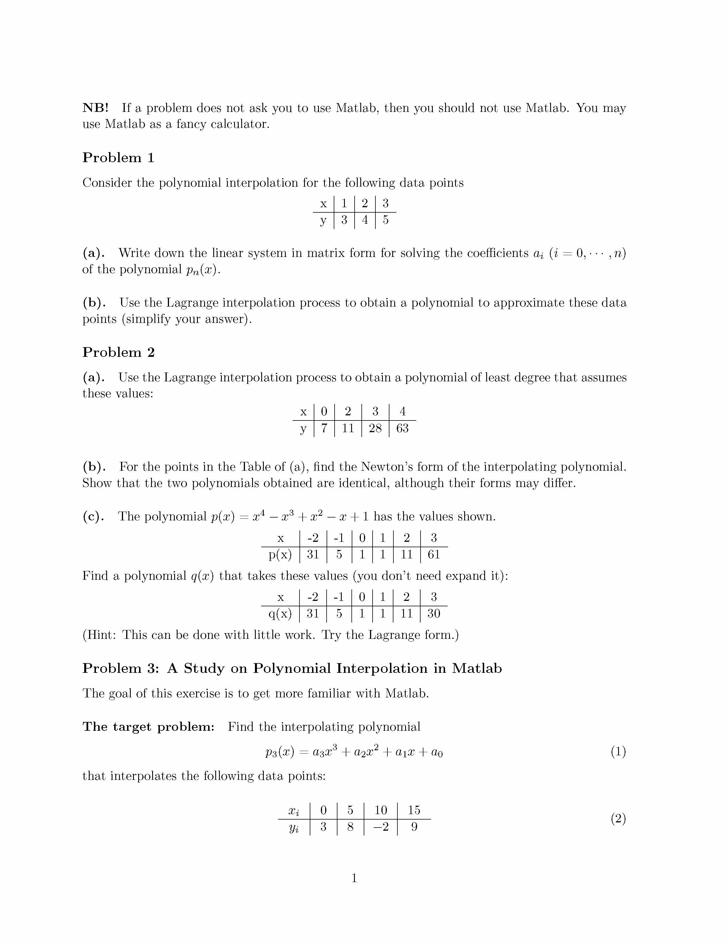 NB! If a problem does not ask you to use Matlab, then you should no...
