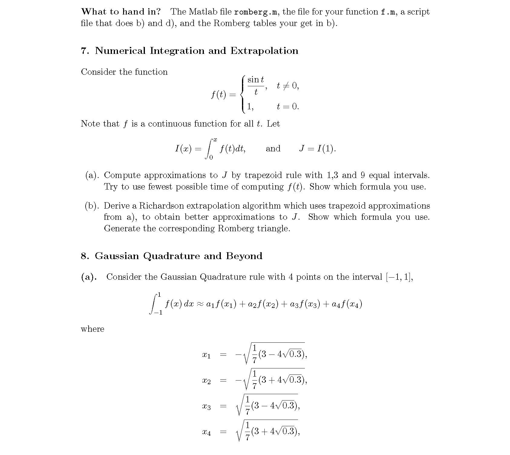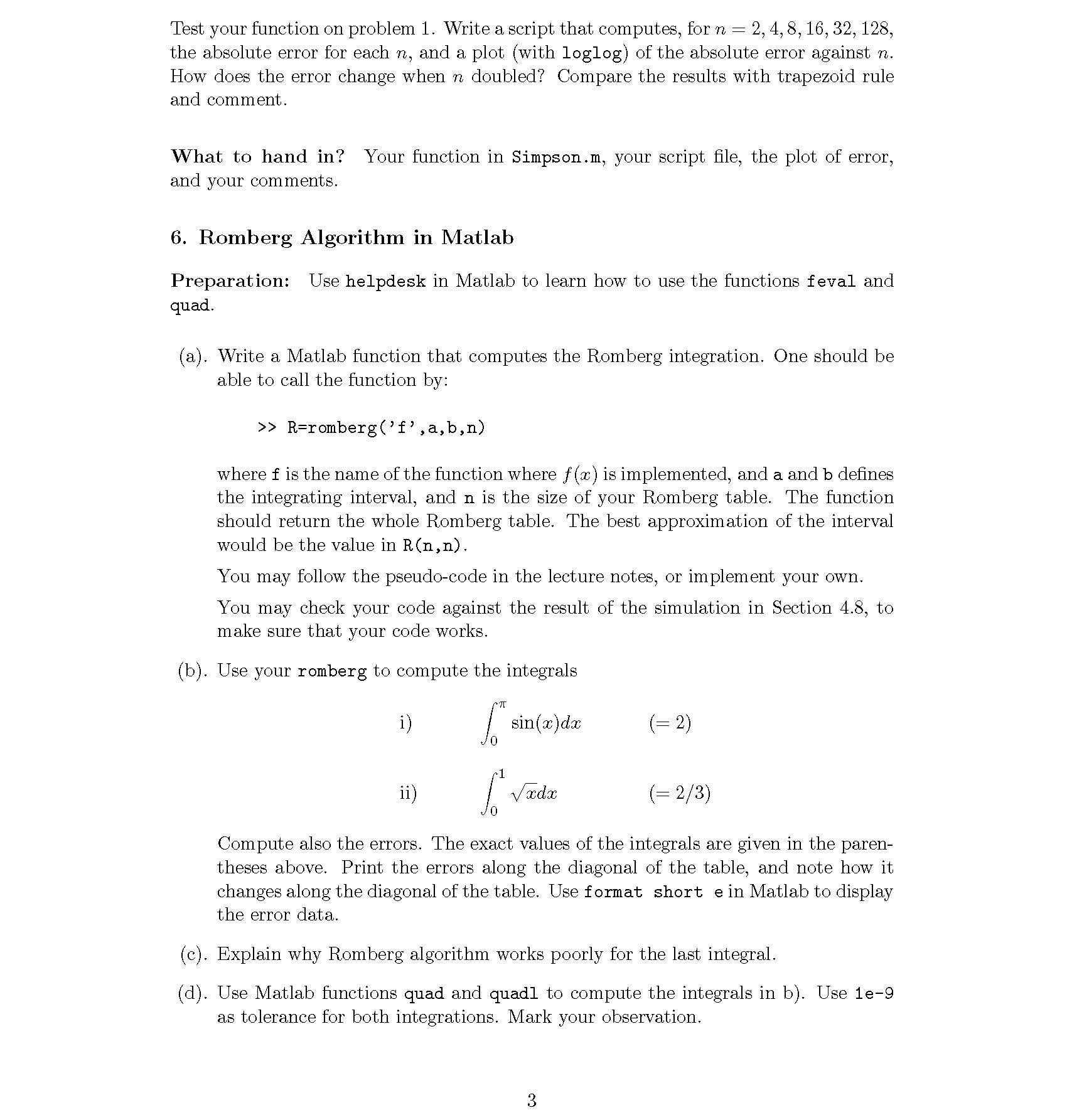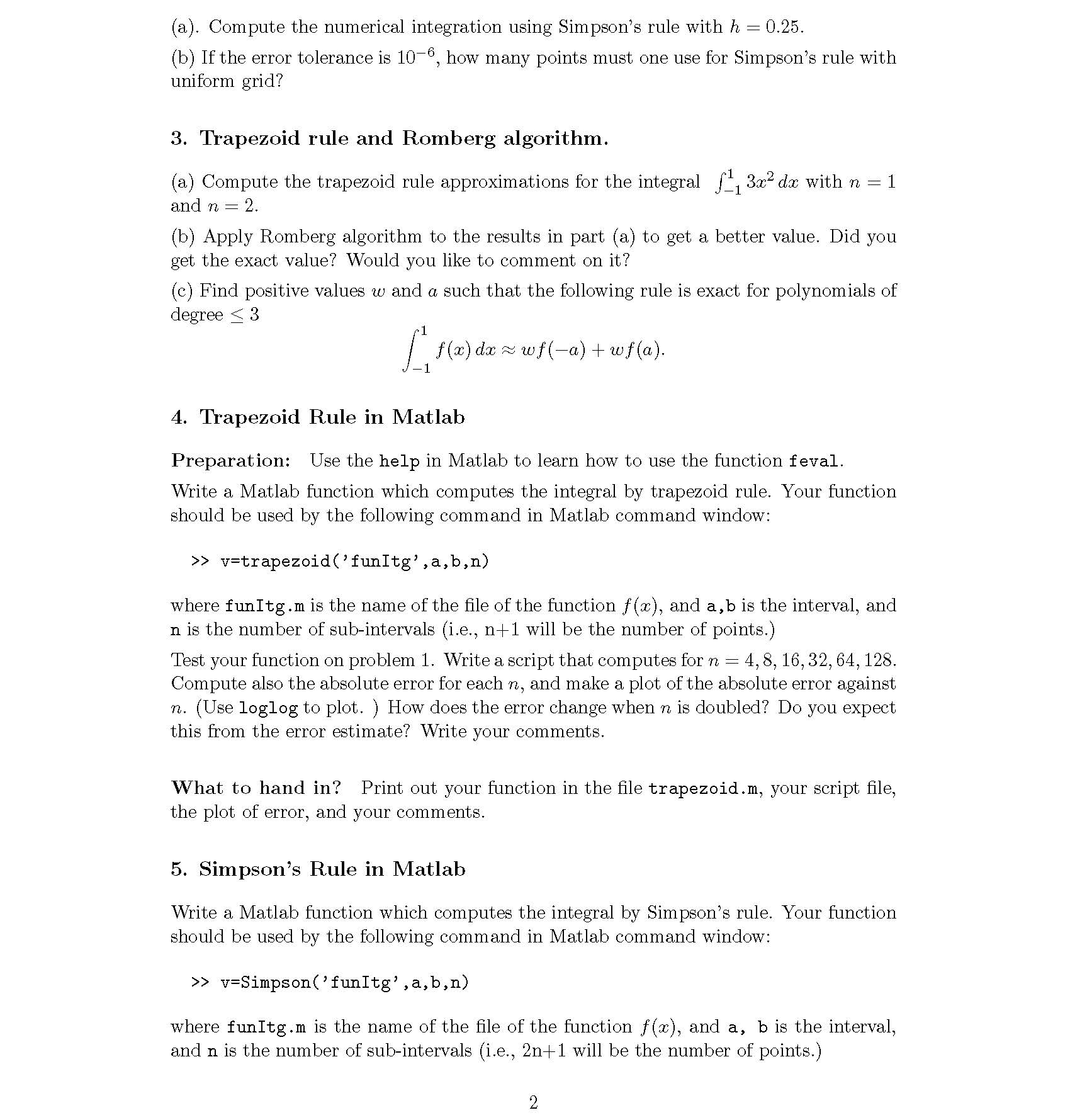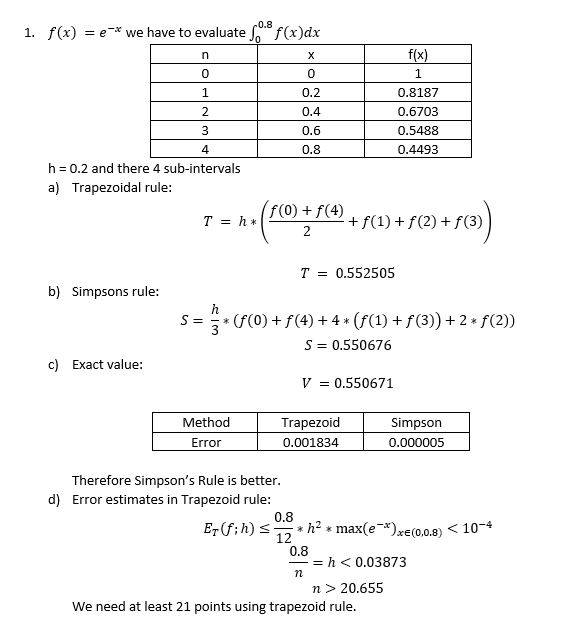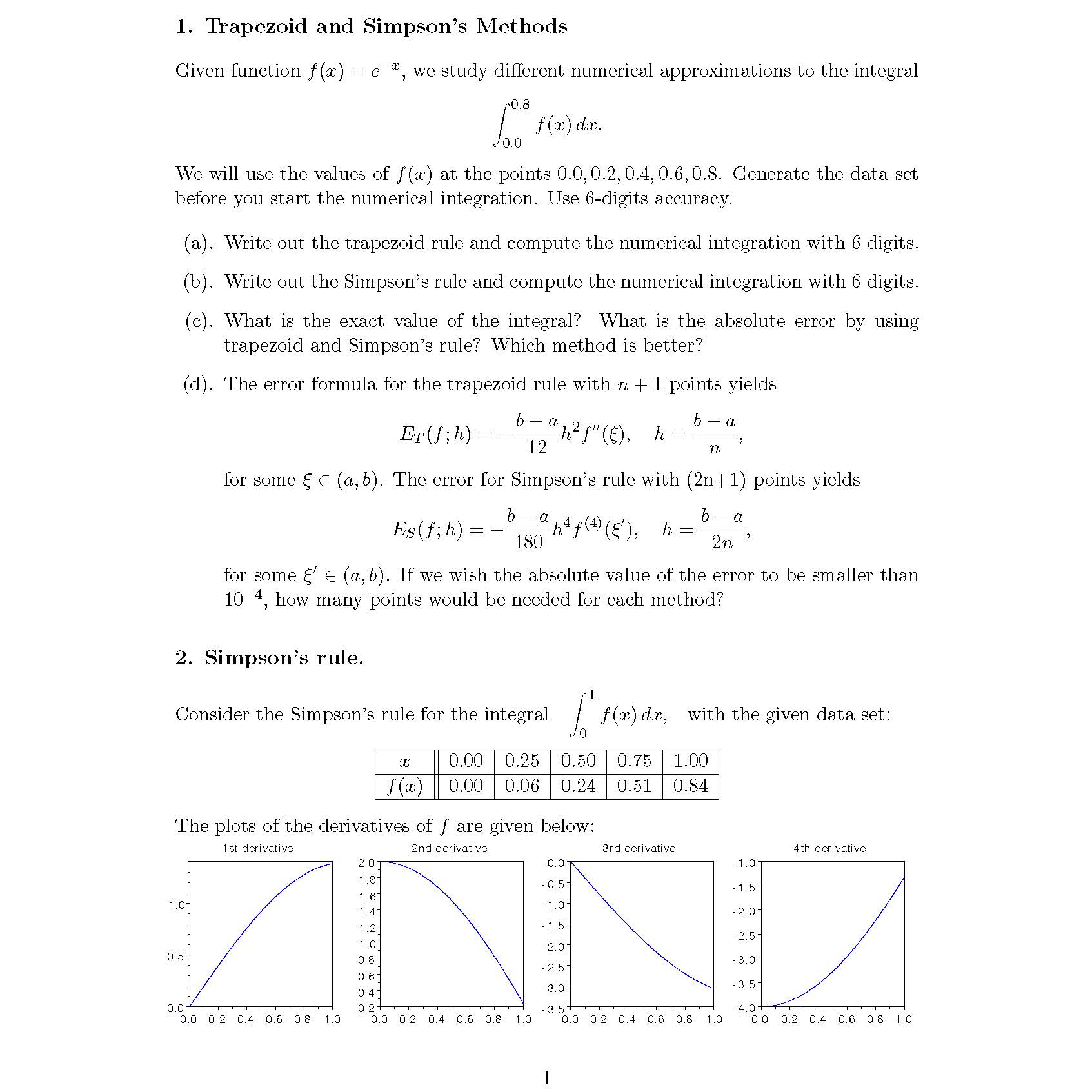 1. Trapezoid and Simpson’s Methods Given function f(x) = e−x,...