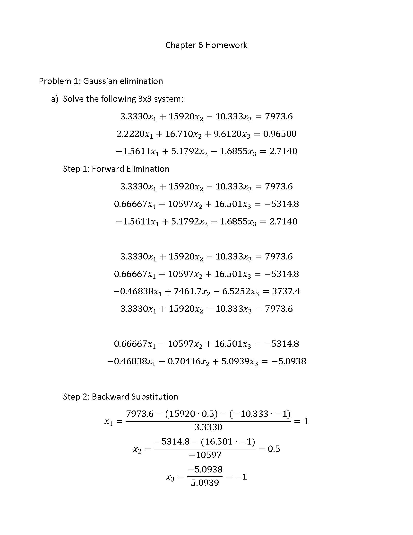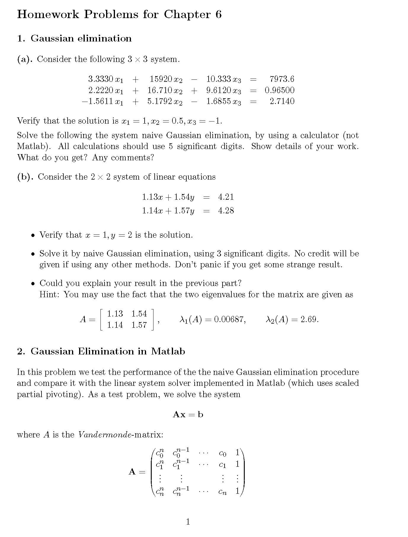 Homework Problems for Chapter 6 1. Gaussian elimination (a). Cons...