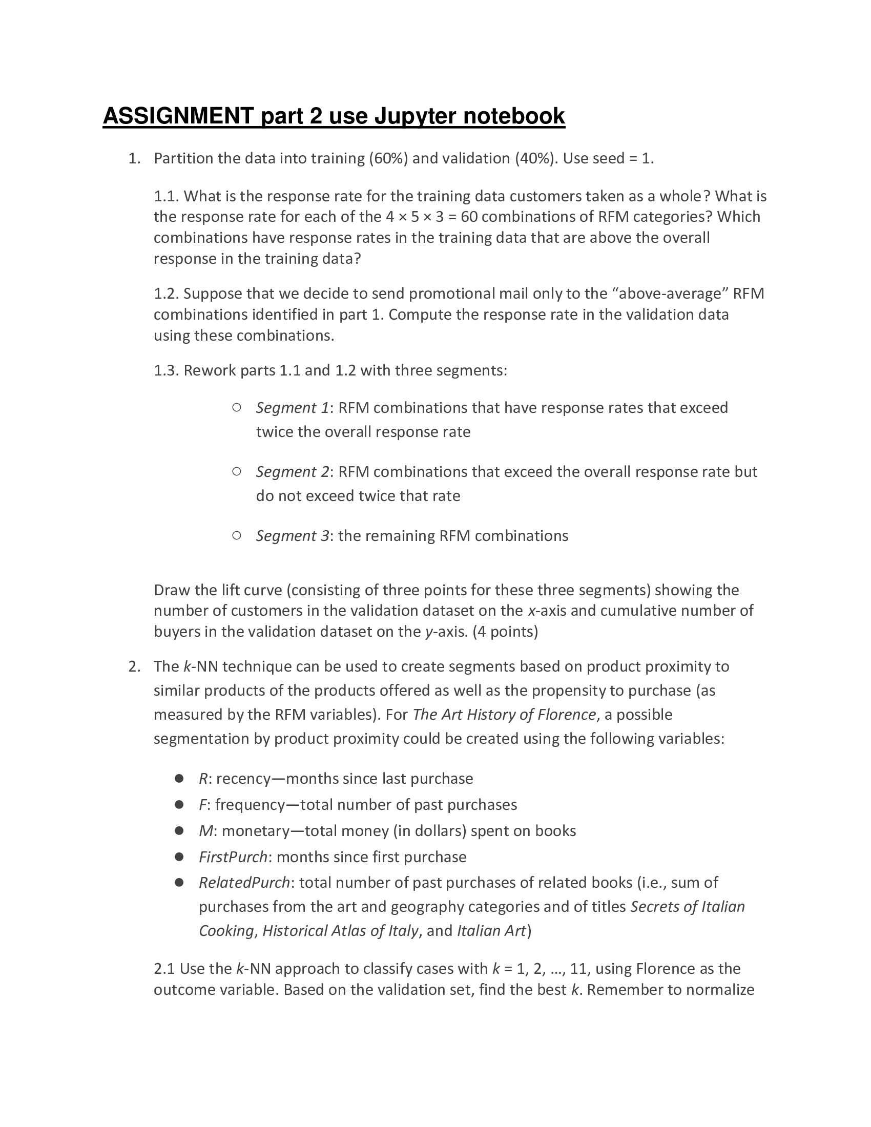 ASSIGNMENT part 2 use Jupyter notebook 1. Partition the data into ...
