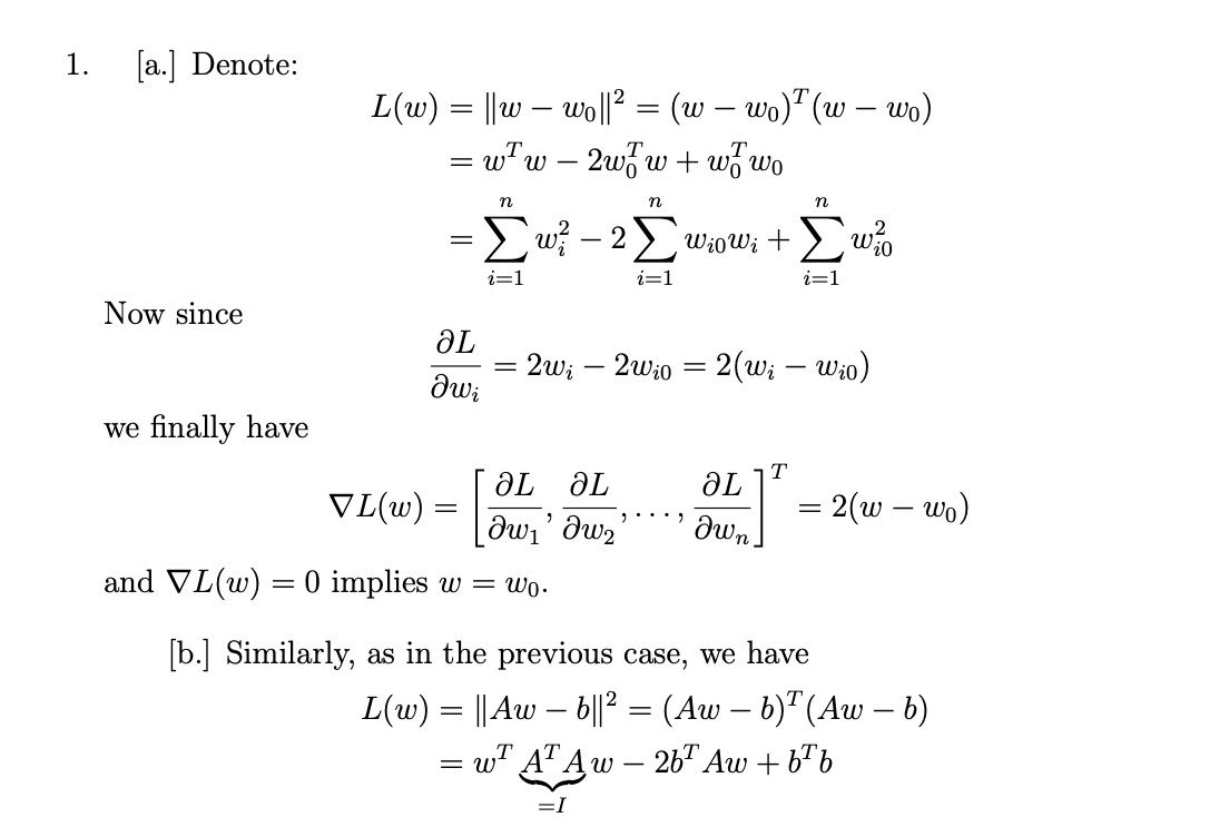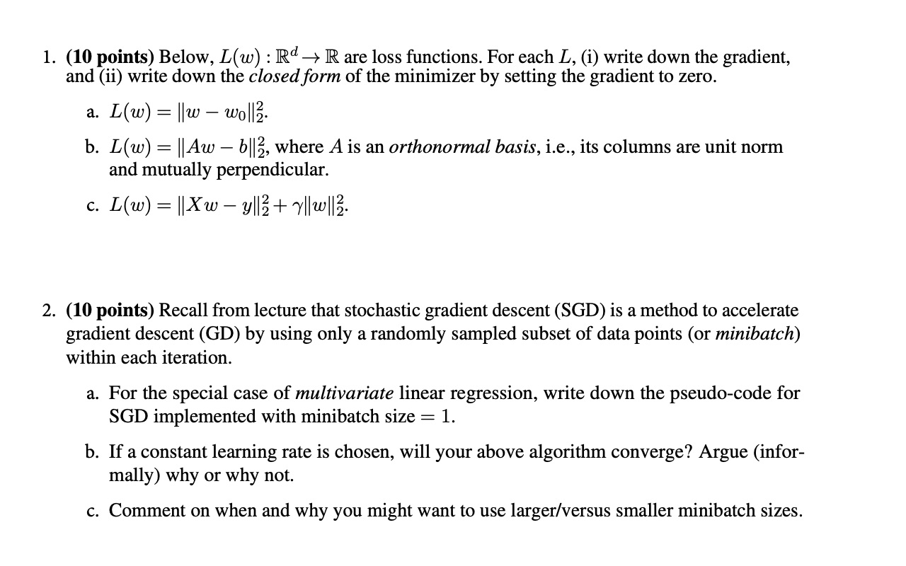 1. (10 points) Below, L(w) : Rd R are loss functions. For each L, (...