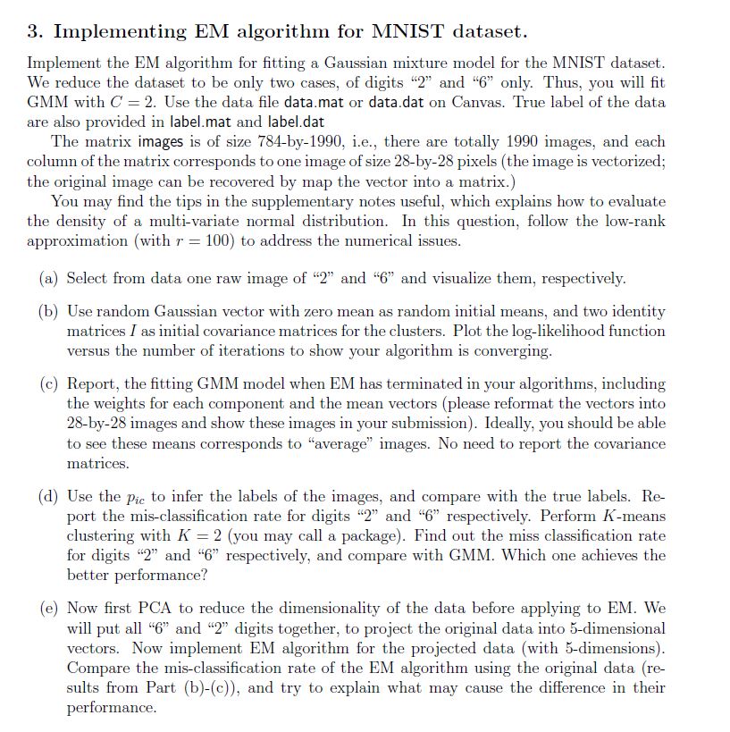 3. Implementing EM algorithm for MNIST dataset. Implement the EM a...
