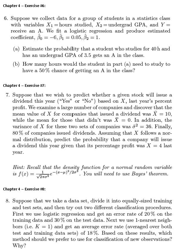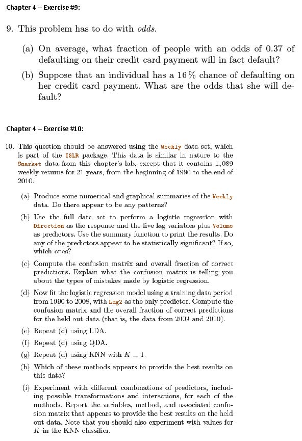 Chapter 4 - Exercise #3: This problem relates to the QDA model, in...