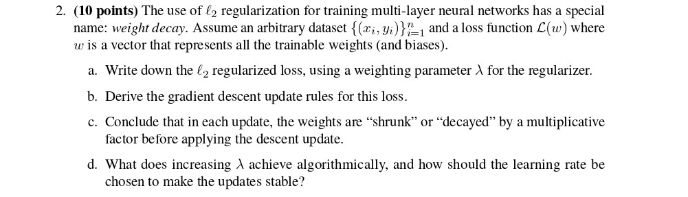 2. (10 points) The use of l2 regularization for training multi-laye...