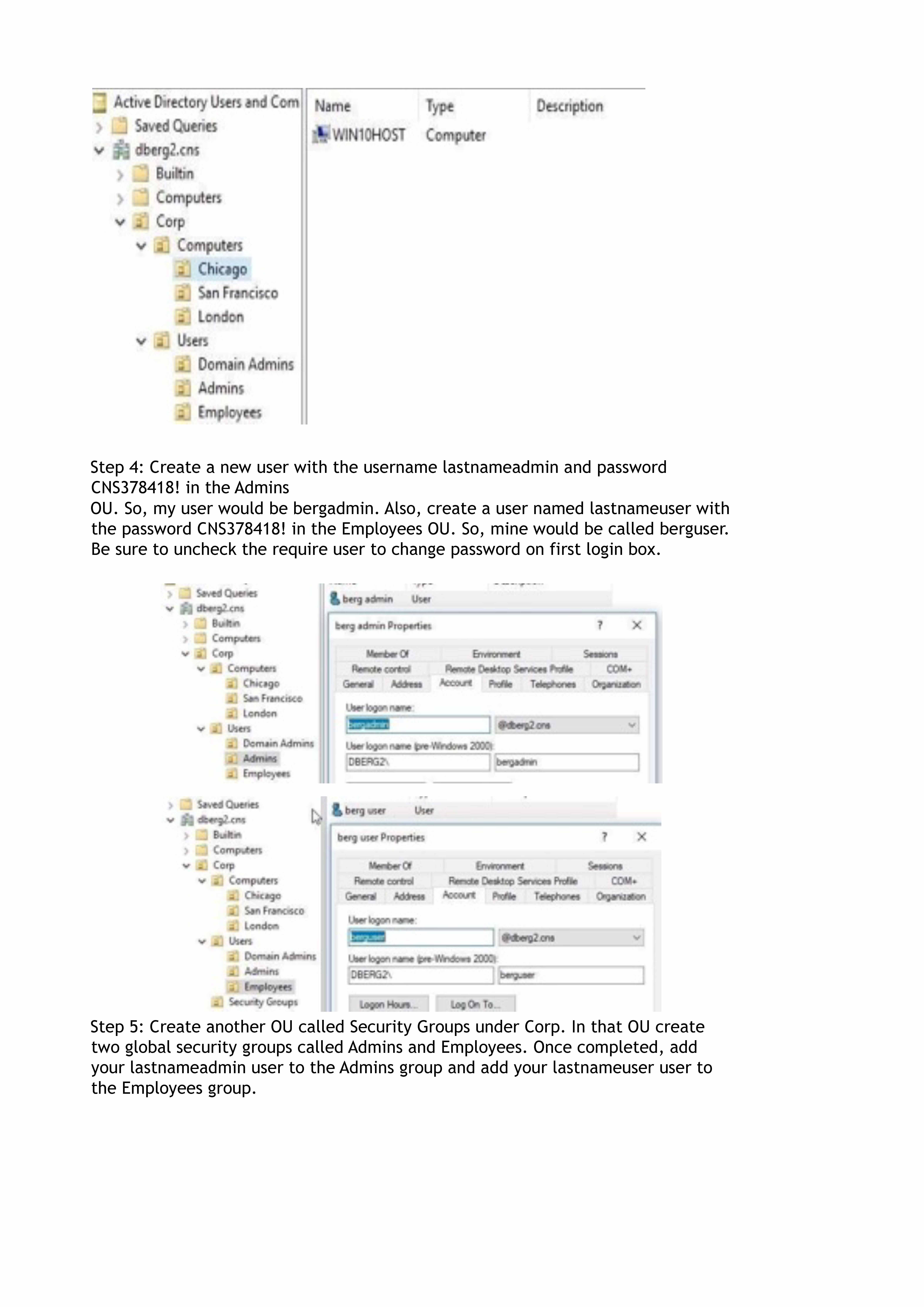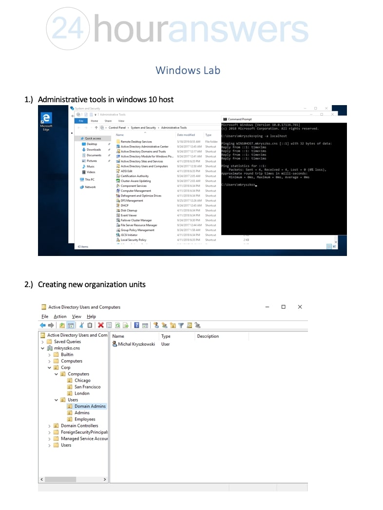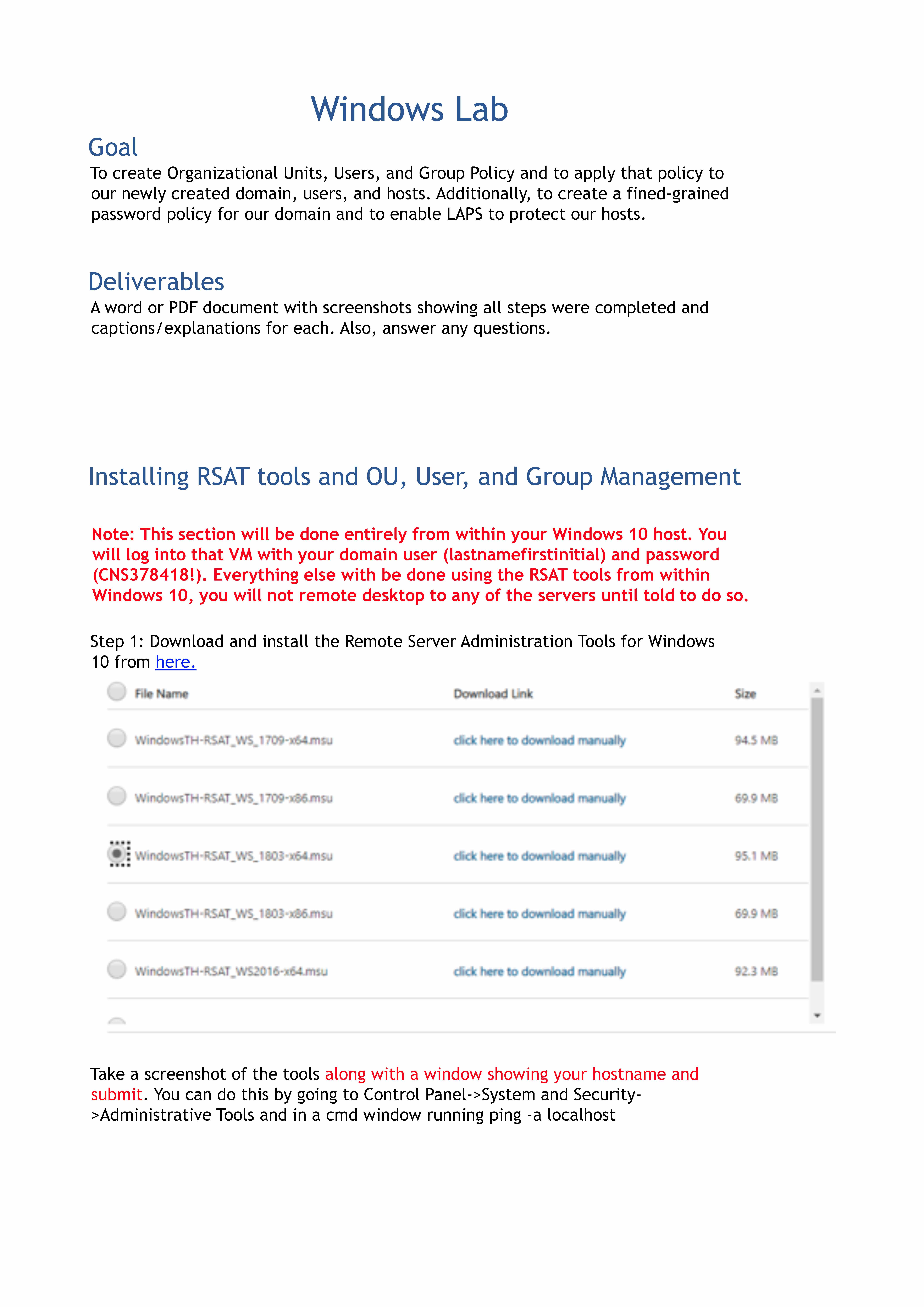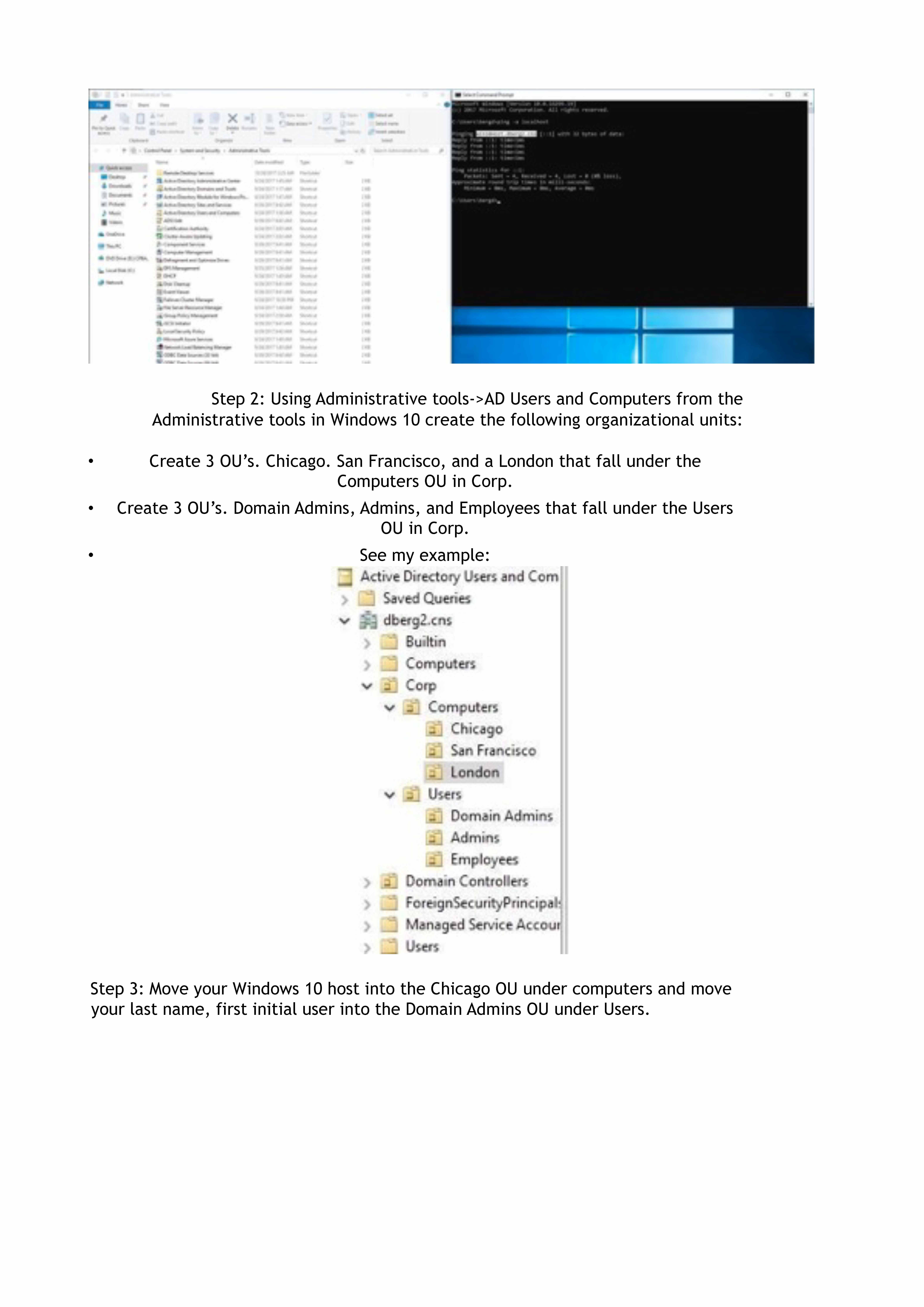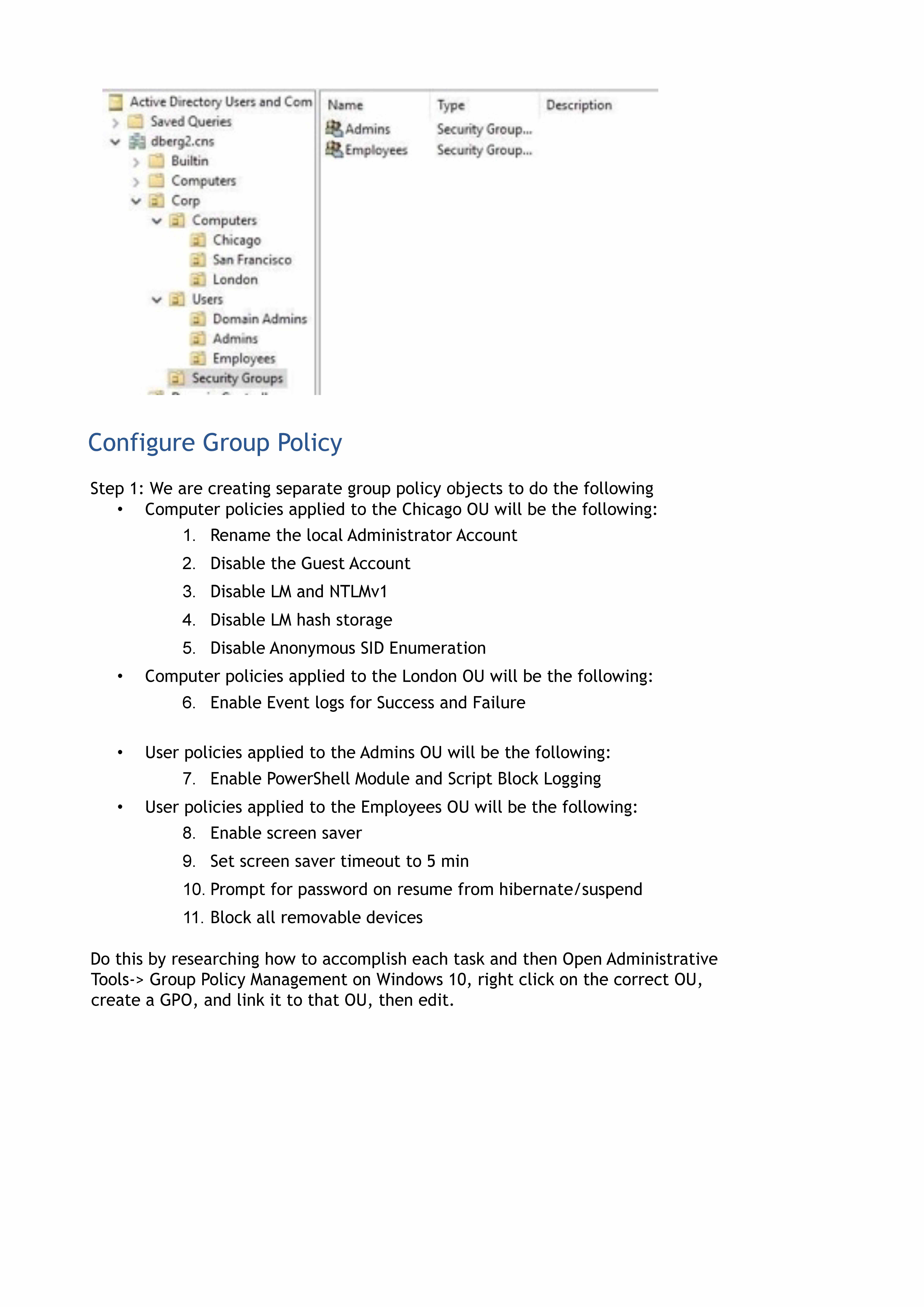 Goal Windows Lab To create Organizational Units, Users, and Group...