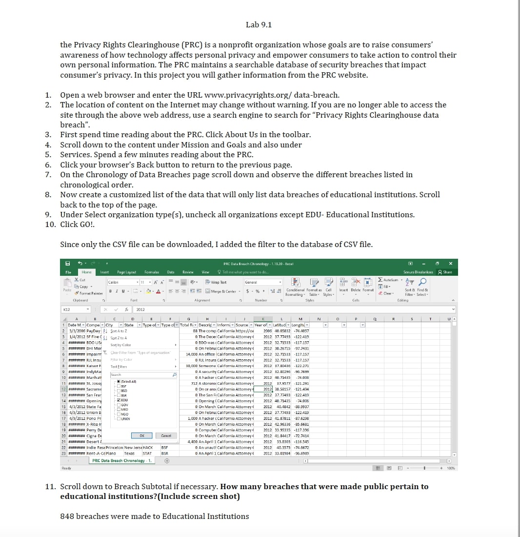 Lab 9.1 the Privacy Rights Clearinghouse (PRC) is a nonprofit orga...
