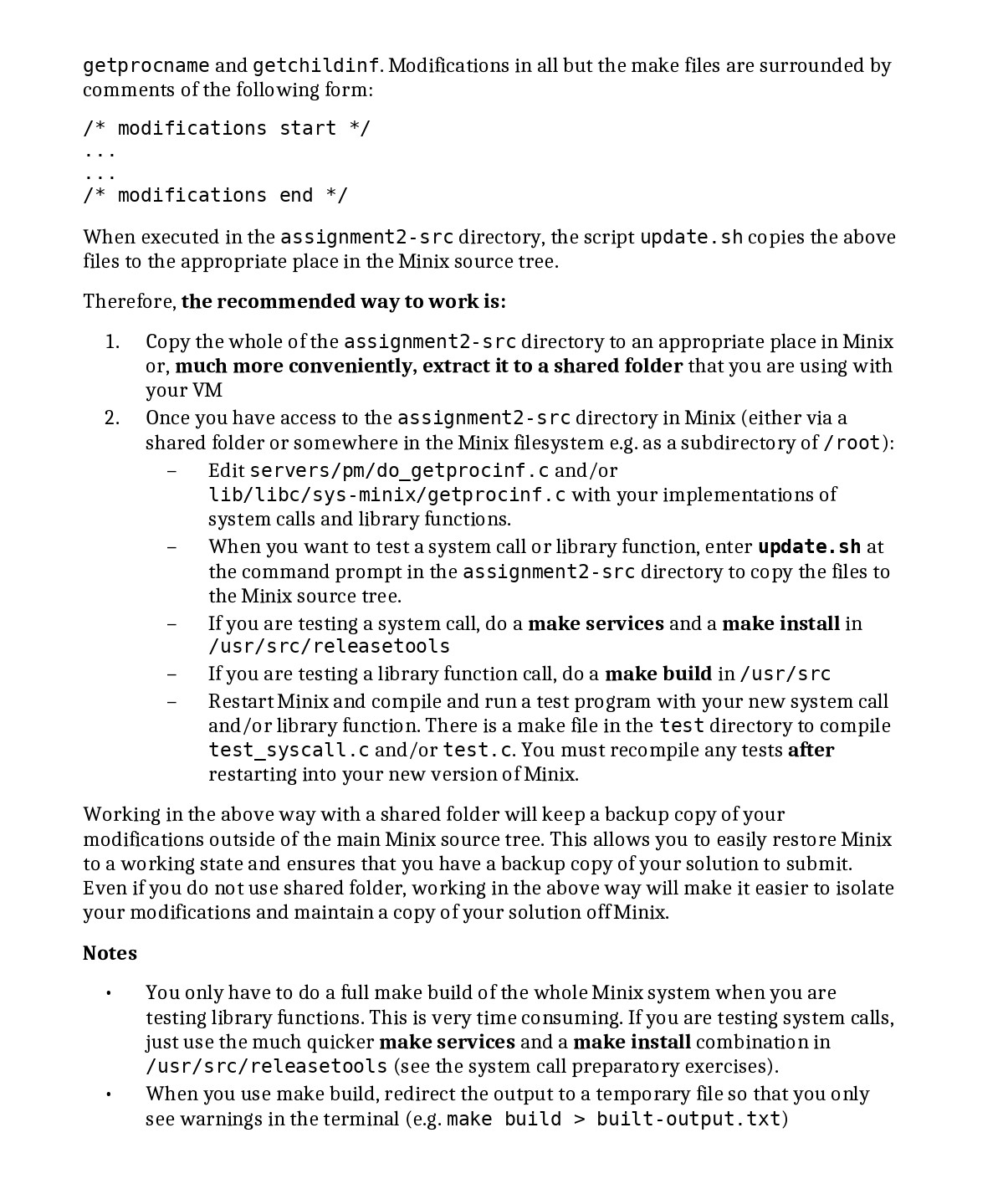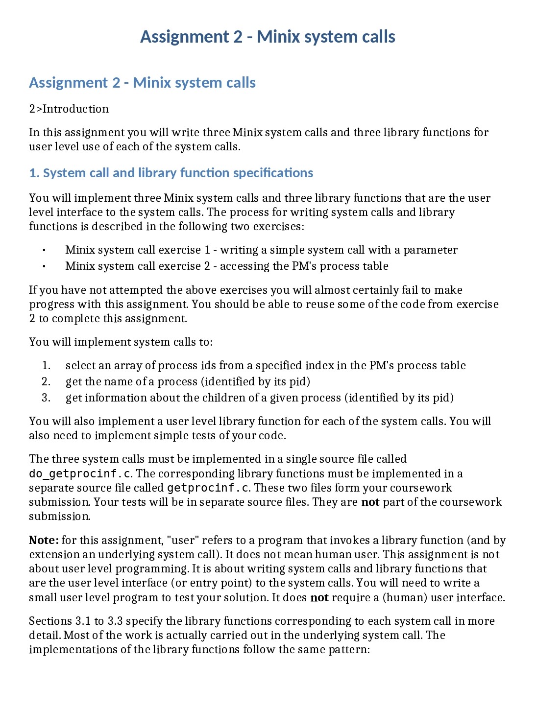 Assignment 2 - Minix system calls Assignment 2 - Minix system call...