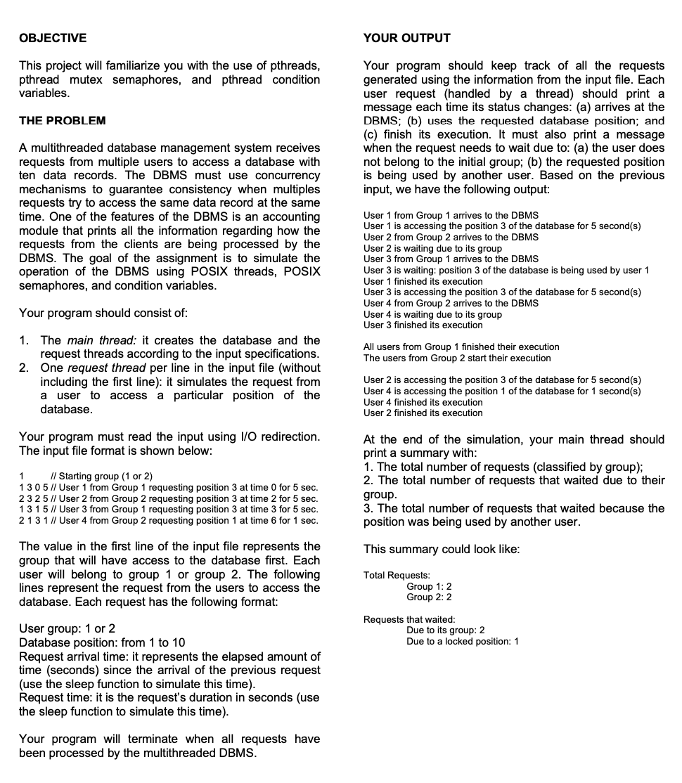 OBJECTIVE This project will familiarize you with the use of pthrea...
