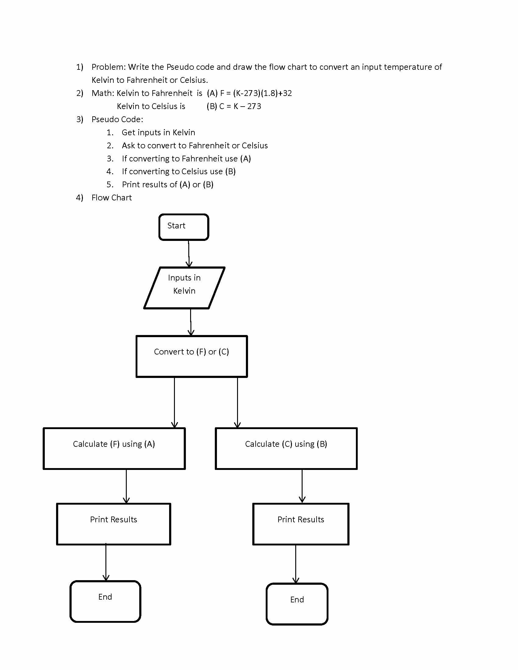 1) Problem: Write the Pseudo code and draw the flow chart to conver...
