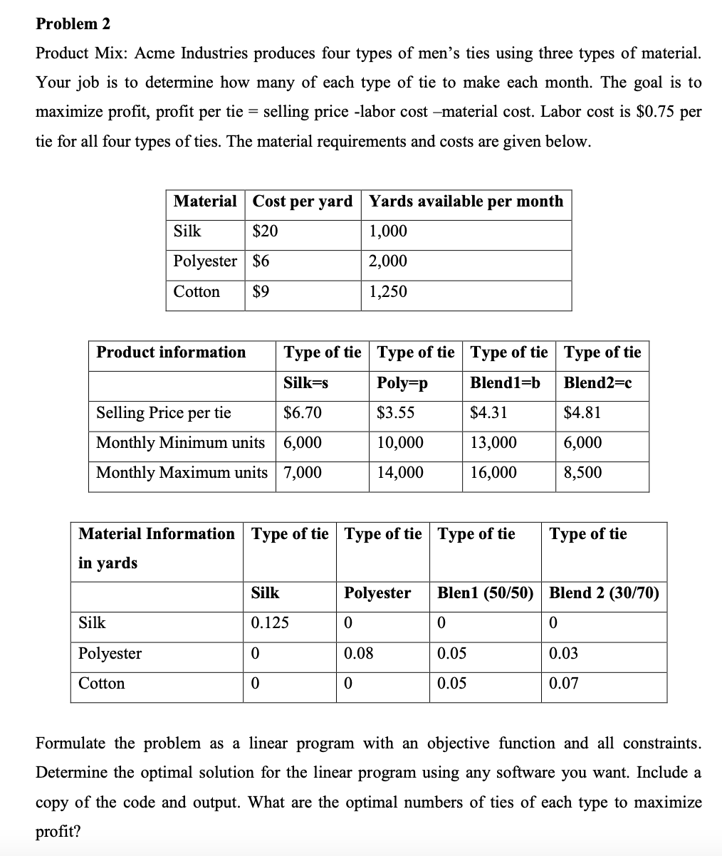 Problem 2 Product Mix: Acme Industries produces four types of menĂ¢...