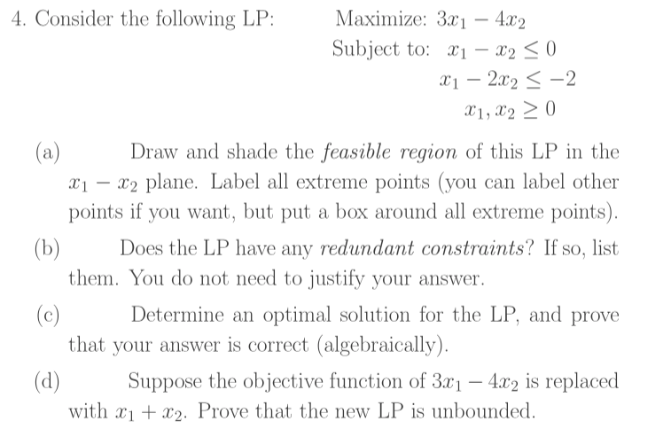 4. Consider the following LP: Maximize: 3x1 - 4x2 Subject to: X1...