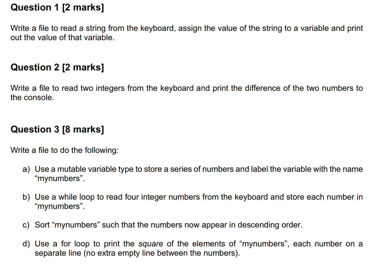 Question 1 [2 marks] Write a file to read a string from the keyboa...