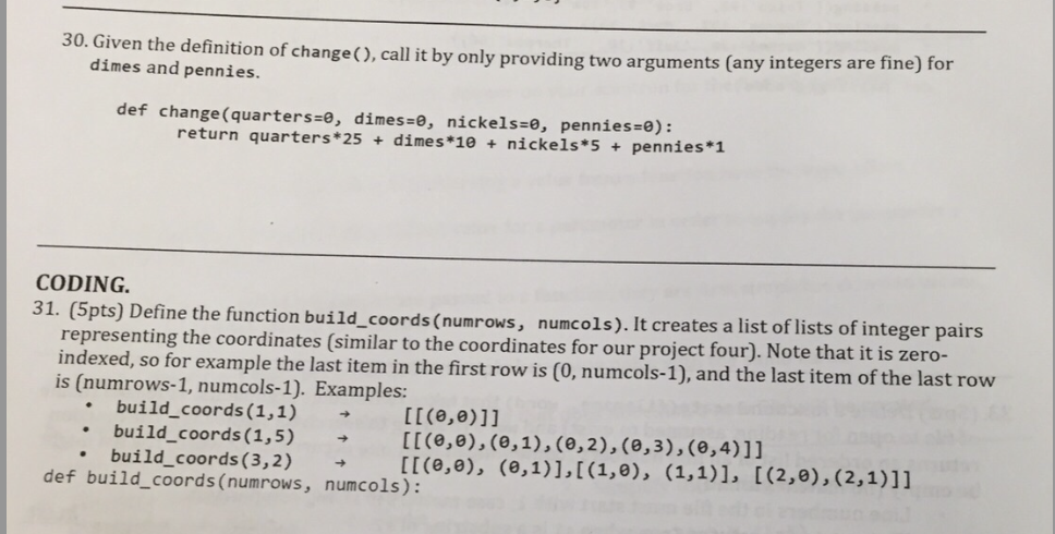 30. Given the definition of change(), call it by only providing two...