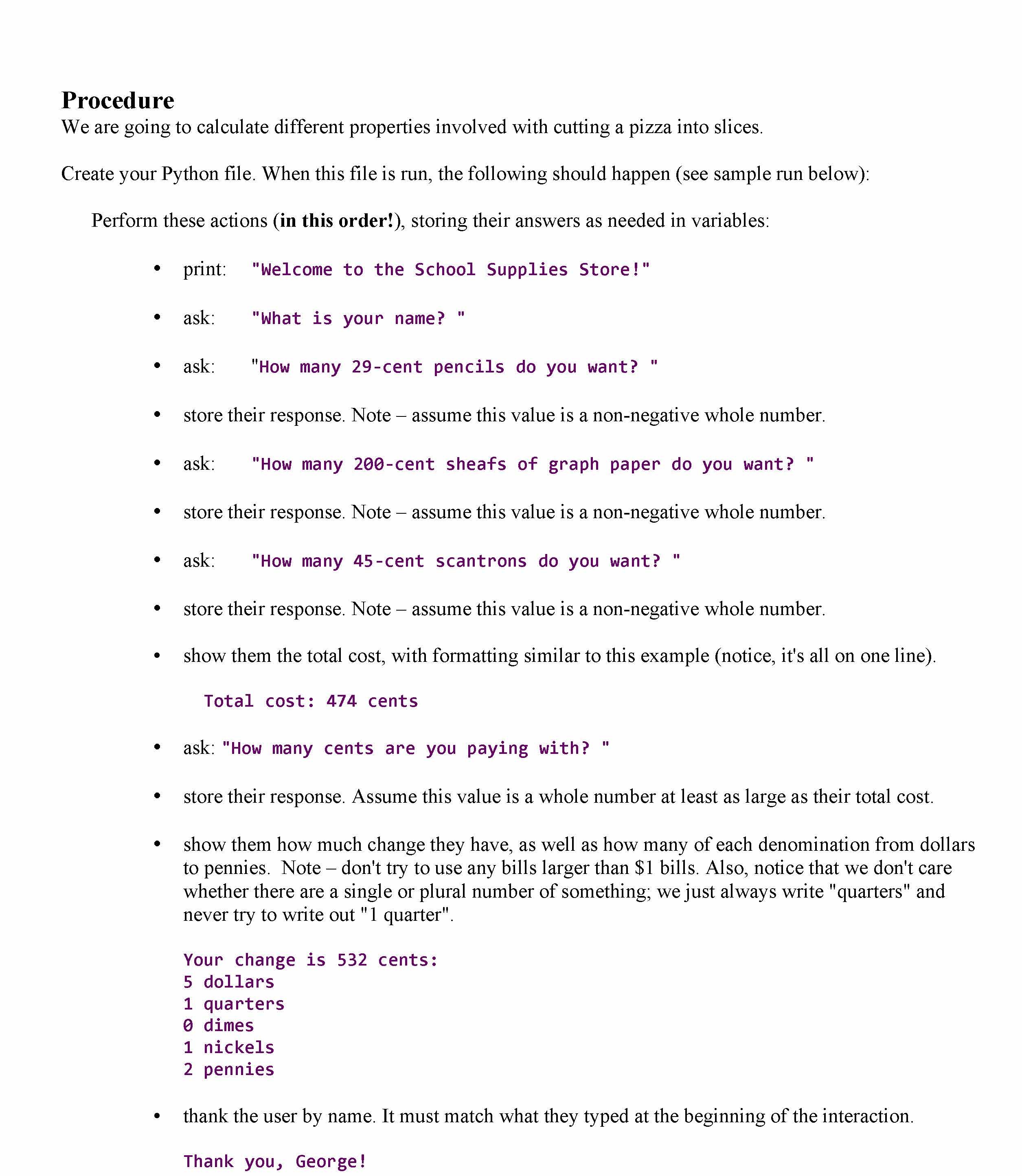 Procedure We are going to calculate different properties involved ...