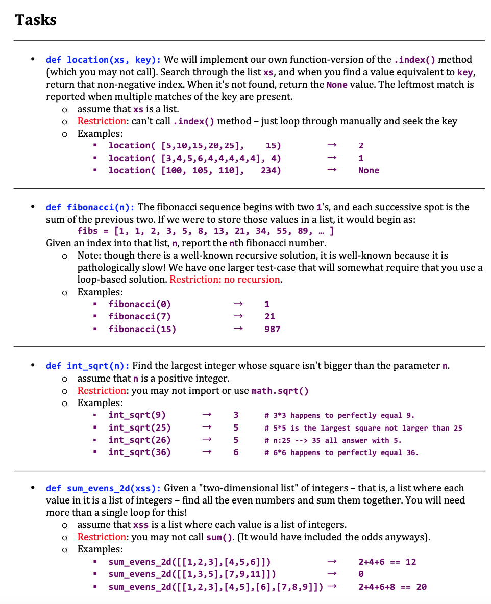 Tasks def location( (xs, key) : Wc will implement our own function...