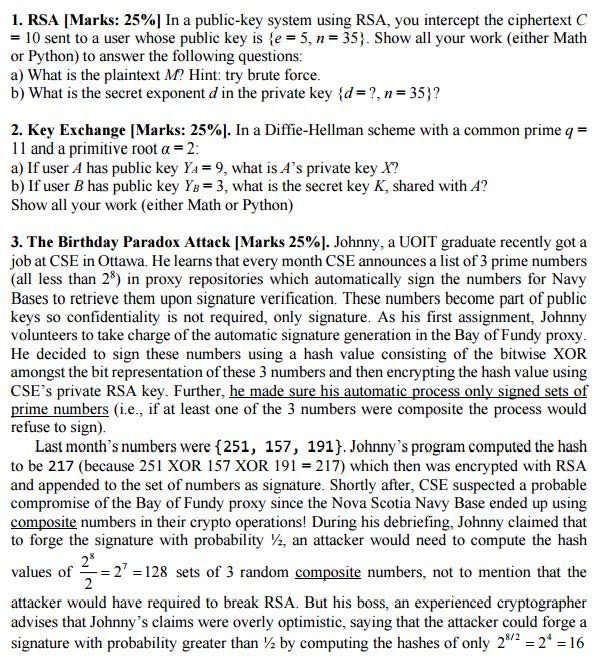 1. RSA [Marks: 25%] In a public-key system using RSA, you intercept...