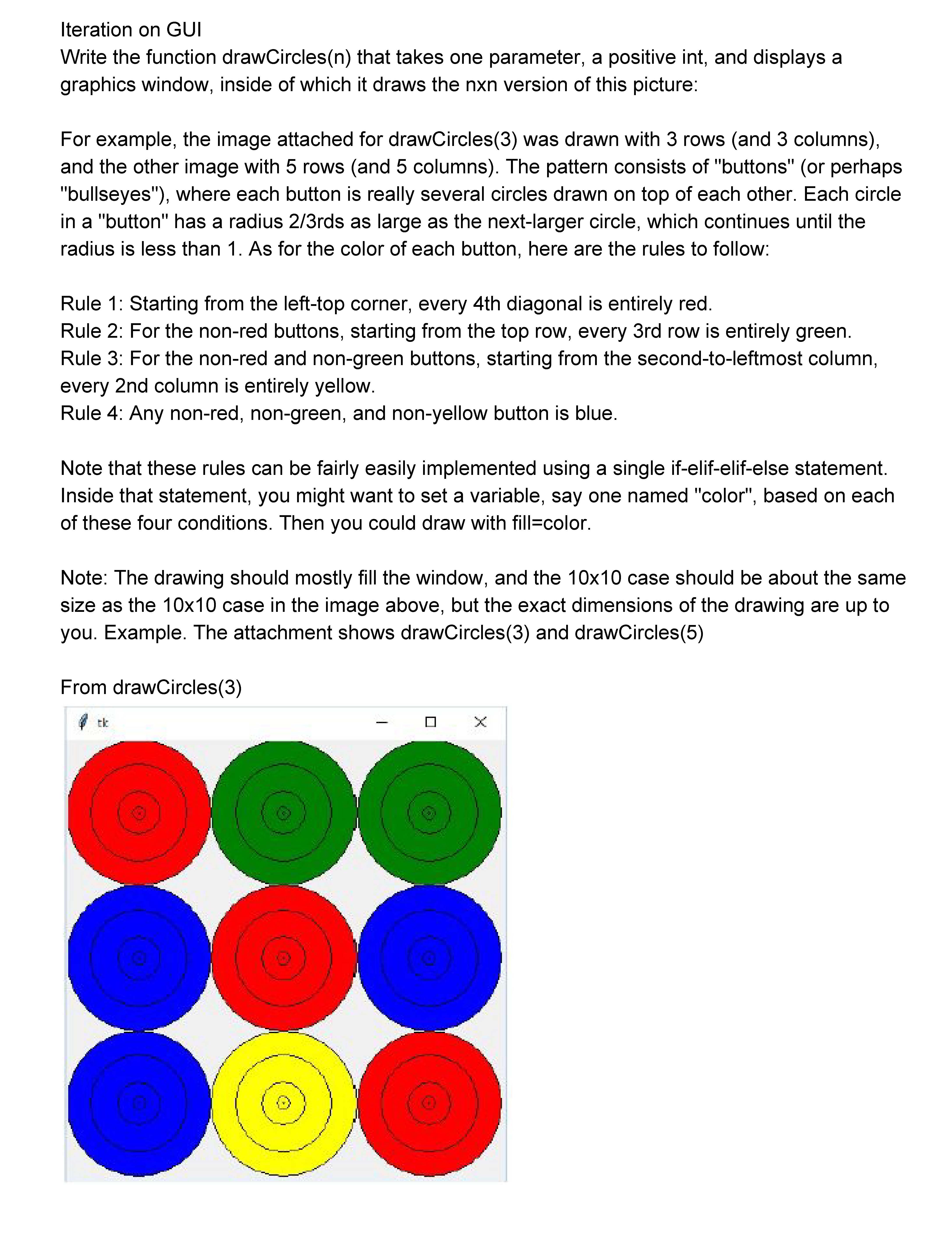 Iteration on GUI Write the function drawCircles(n) that takes one ...