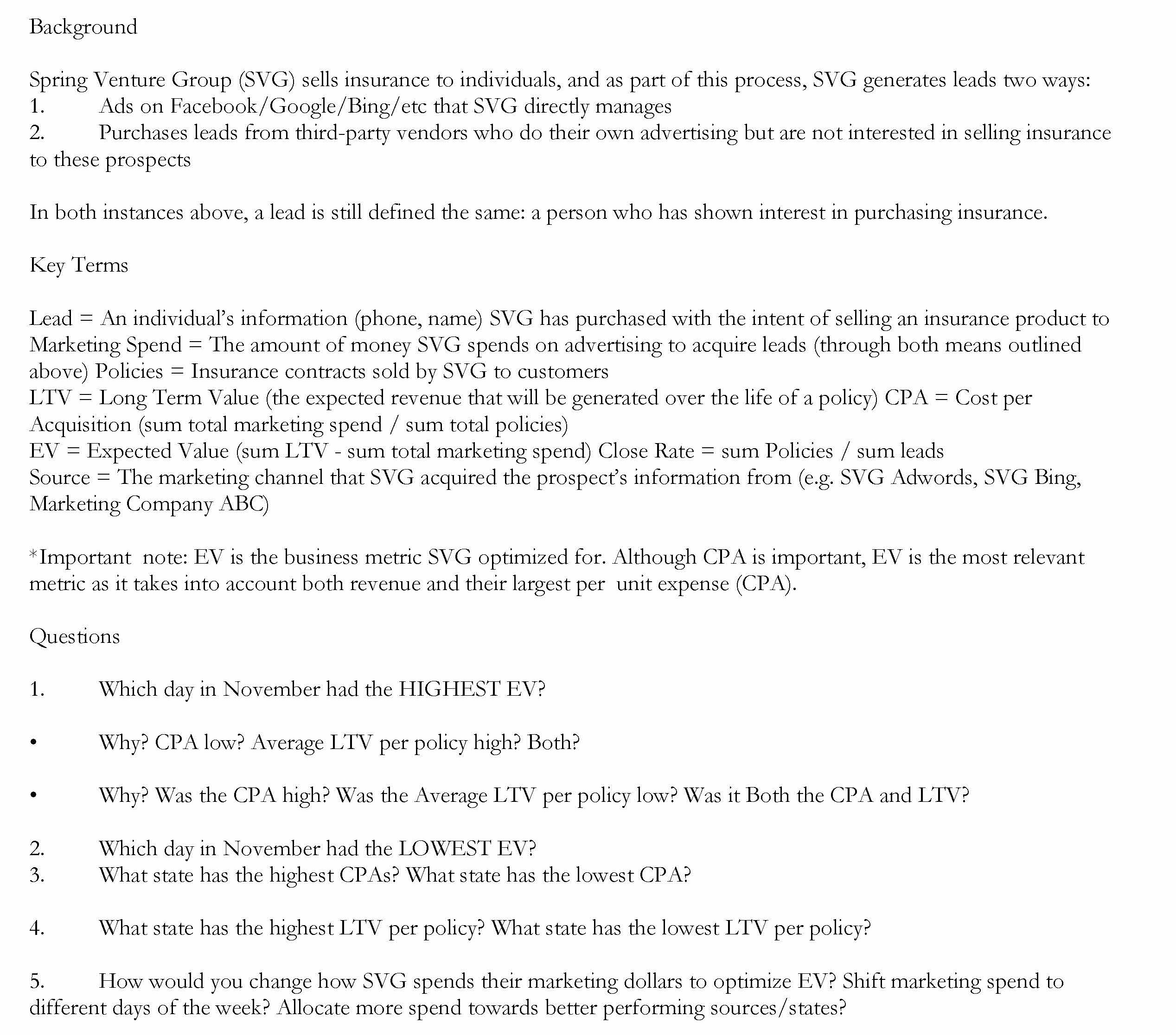 Background Spring Venture Group (SVG) sells insurance to individua...