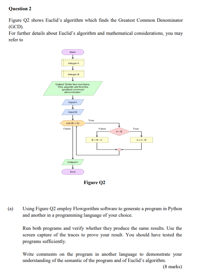 Question 2 Figure Q2 shows Euclid's algorithm which finds the Grea...