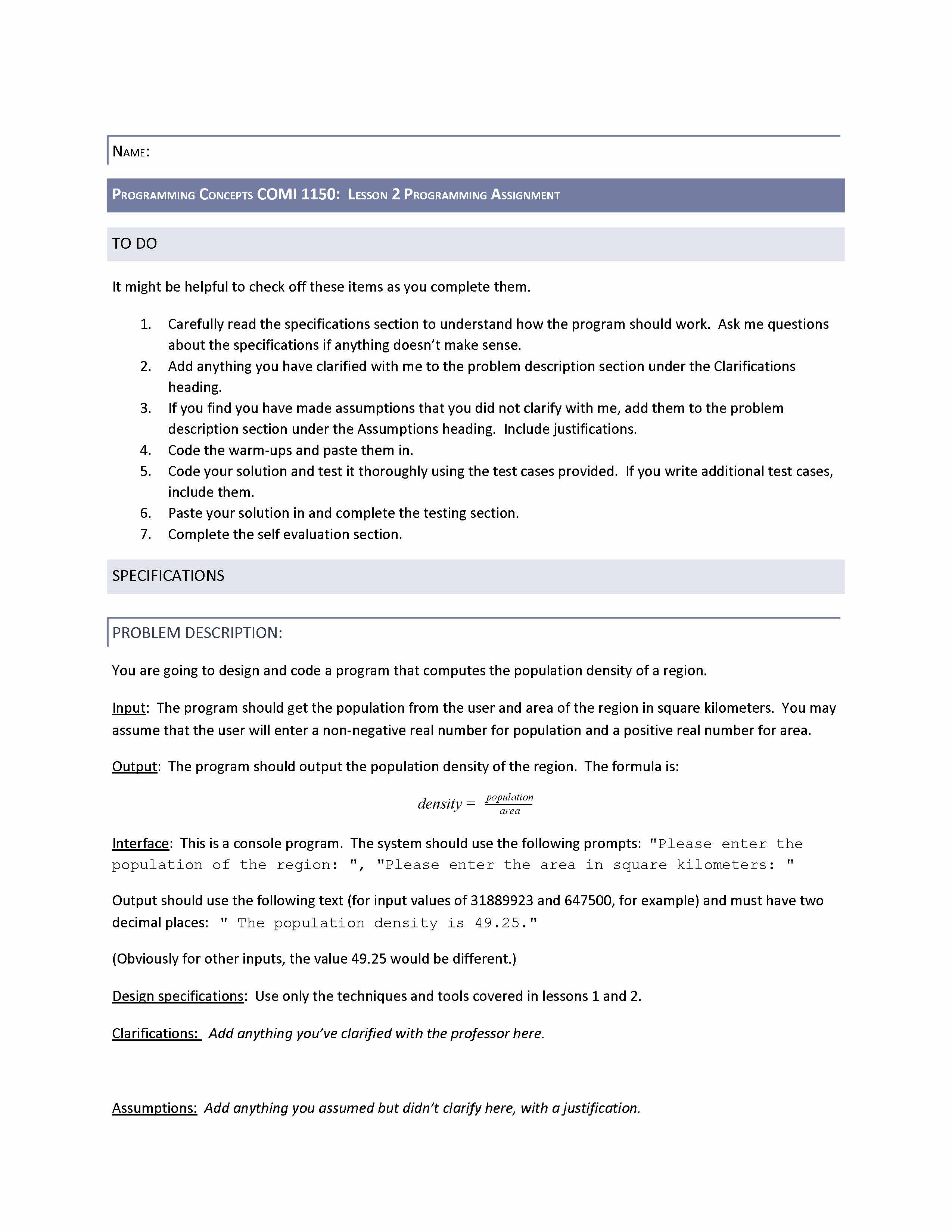 NAME: PROGRAMMING CONCEPTS COMI 1150: LESSON 2 PROGRAMMING ASSIGNM...