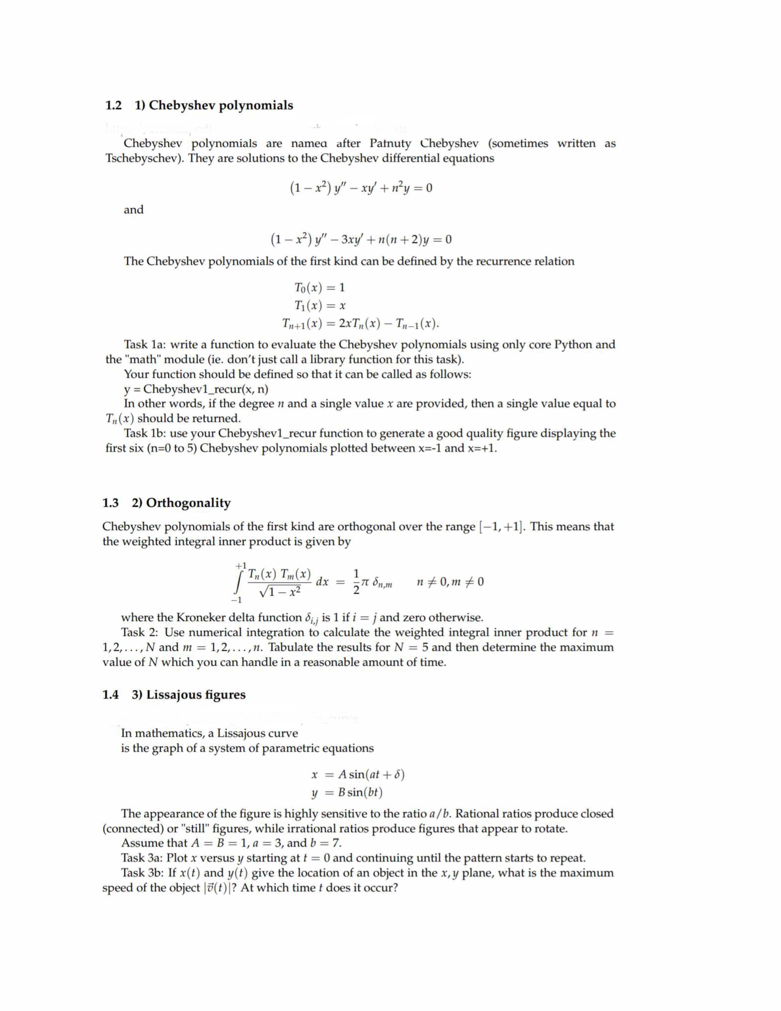 1.2 1) Chebyshev polynomials Chebyshev polynomials are namea after...