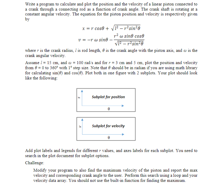 Write a program to calculate and plot the position and the velocity...