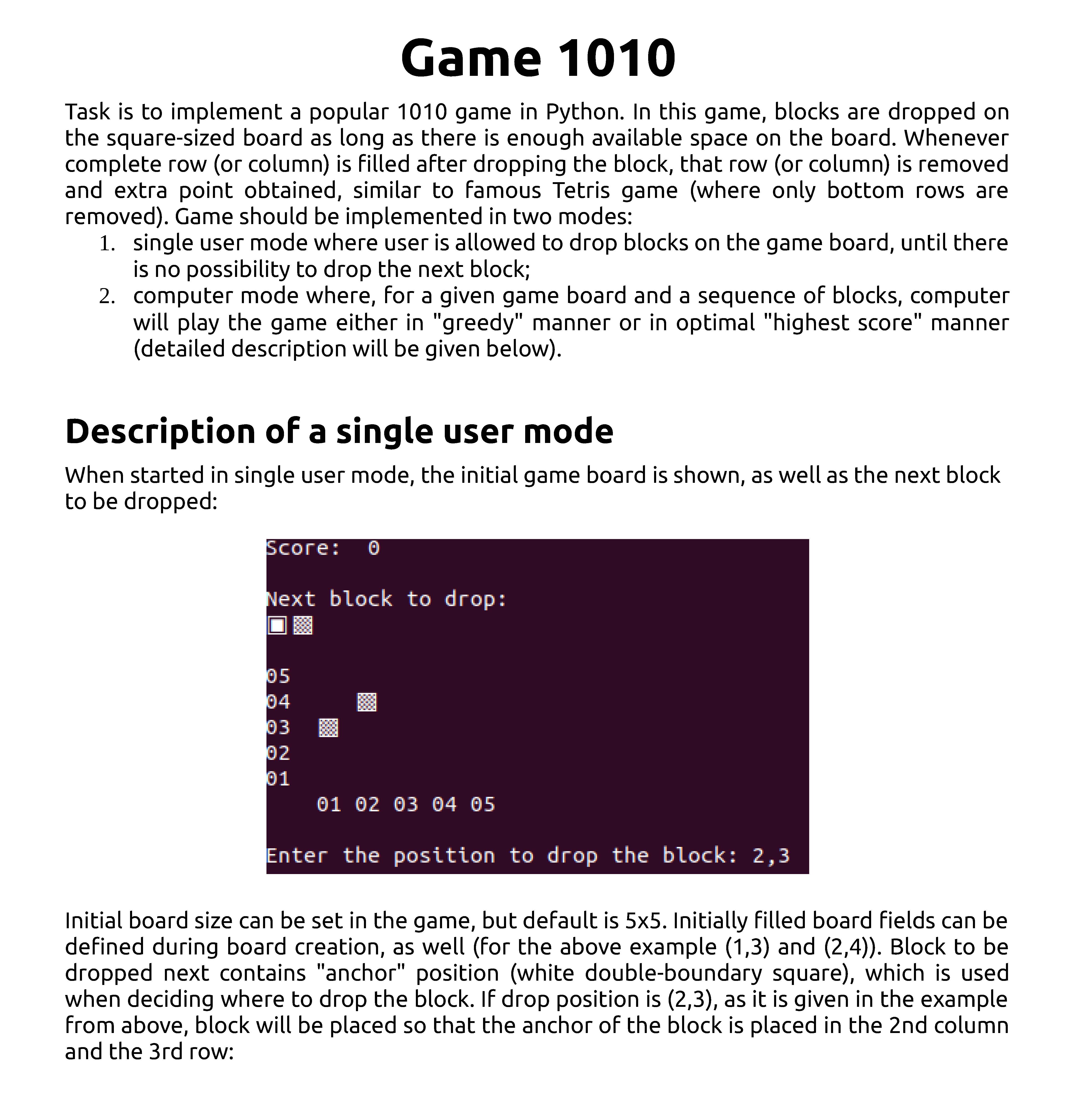 Game 1010 Task is to implement a popular 1010 game in Python. In t...