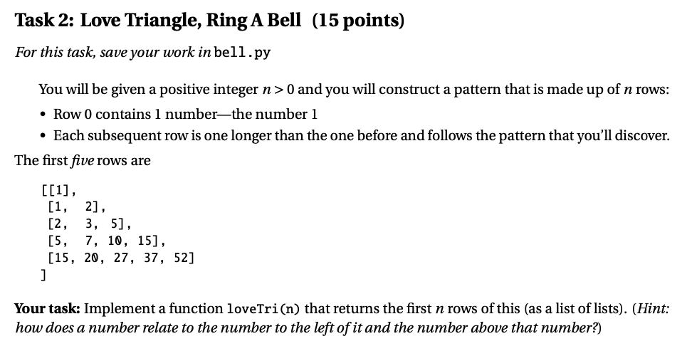 Task 2: Love Triangle, Ring A Bell (15 points) For this task, save...
