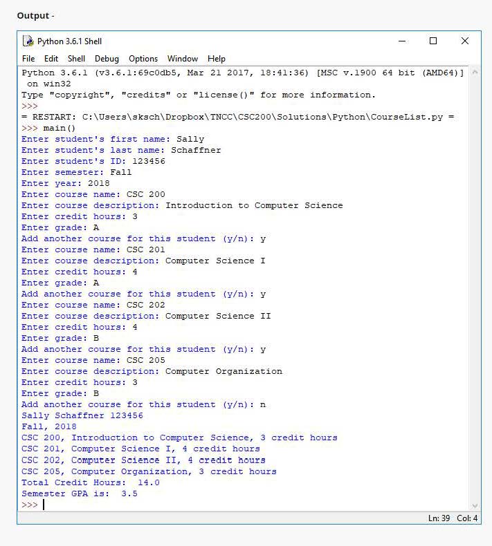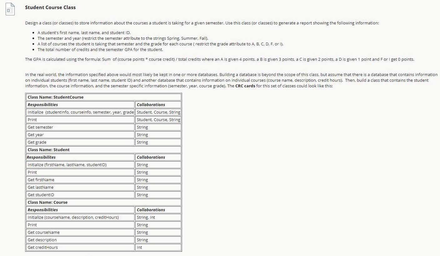 Student Course Class Design a class (or classes) to store informat...