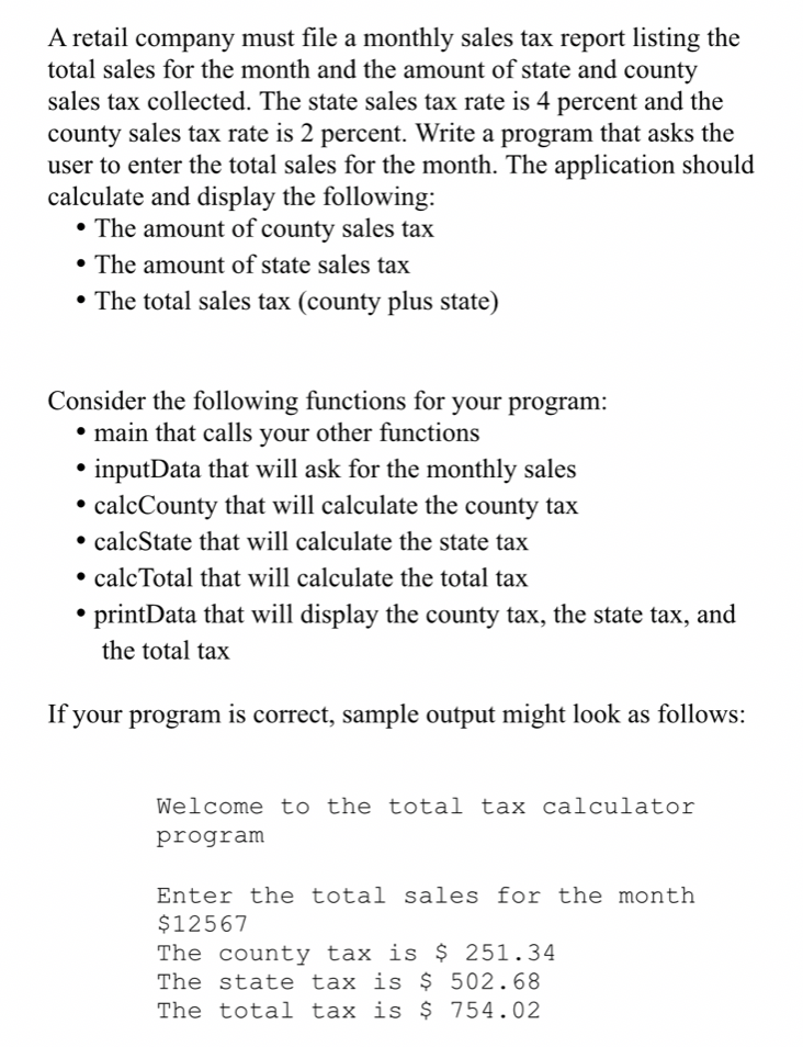 A retail company must file a monthly sales tax report listing the ...
