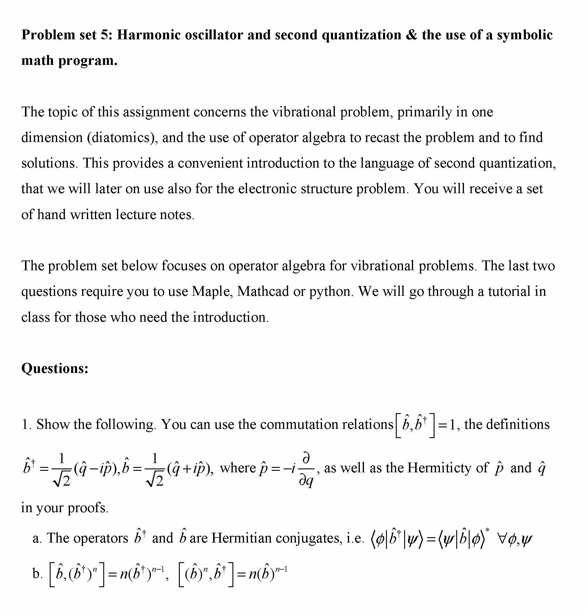 Problem set 5: Harmonic oscillator and second quantization & th...