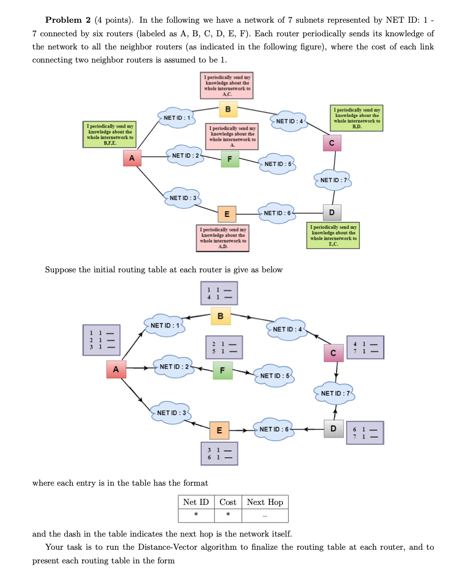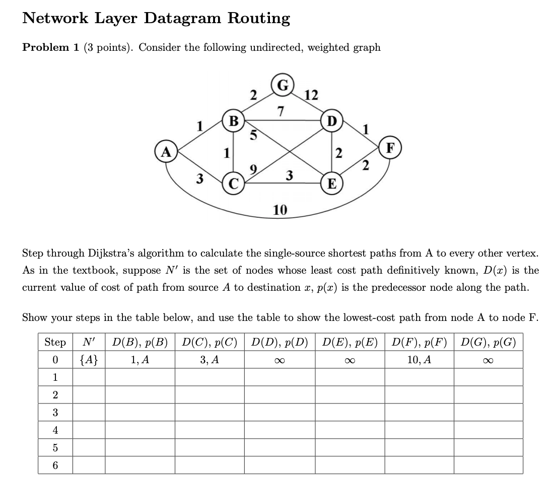 Network Layer Datagram Routing Problem 1 (3 points). Consider the...
