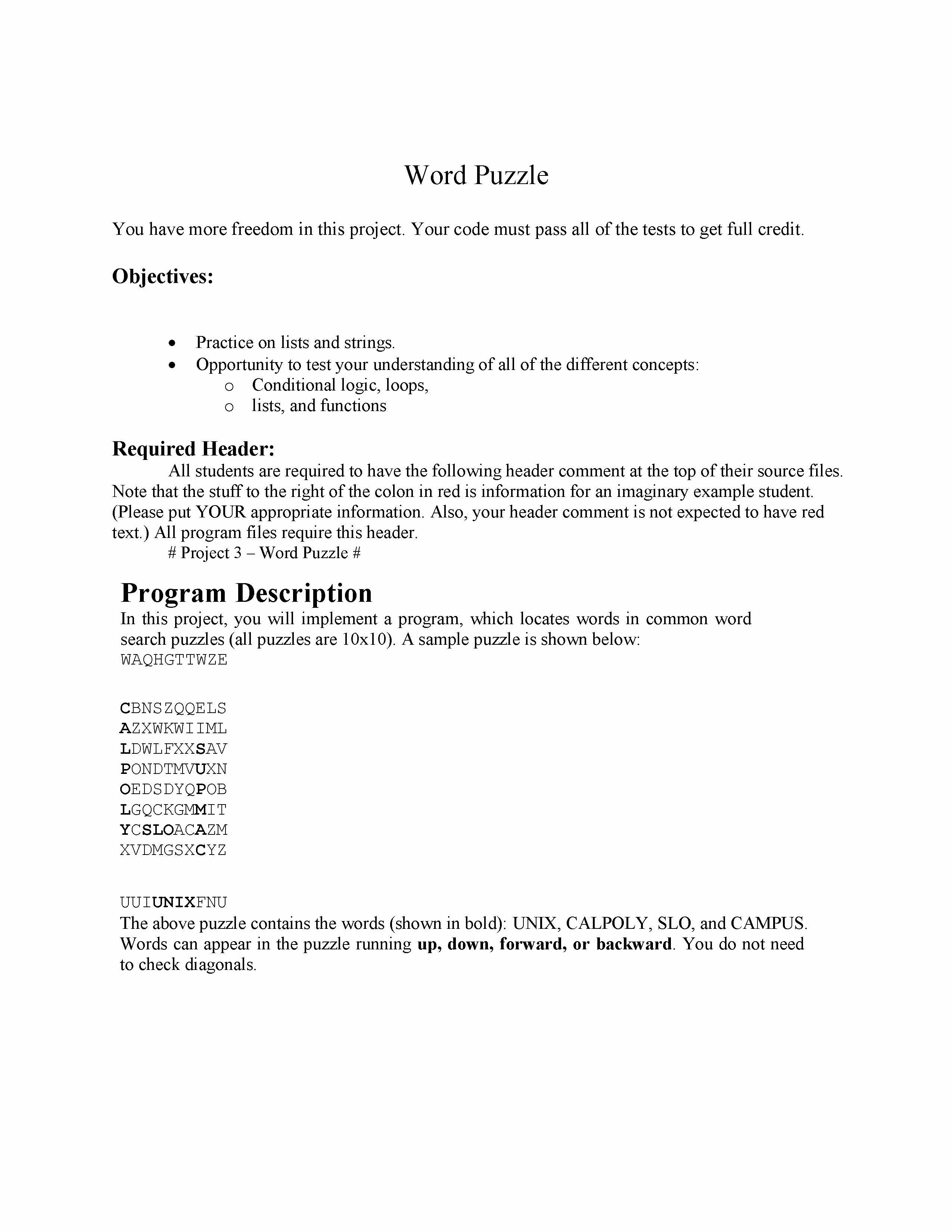 Word Puzzle You have more freedom in this project. Your code must...