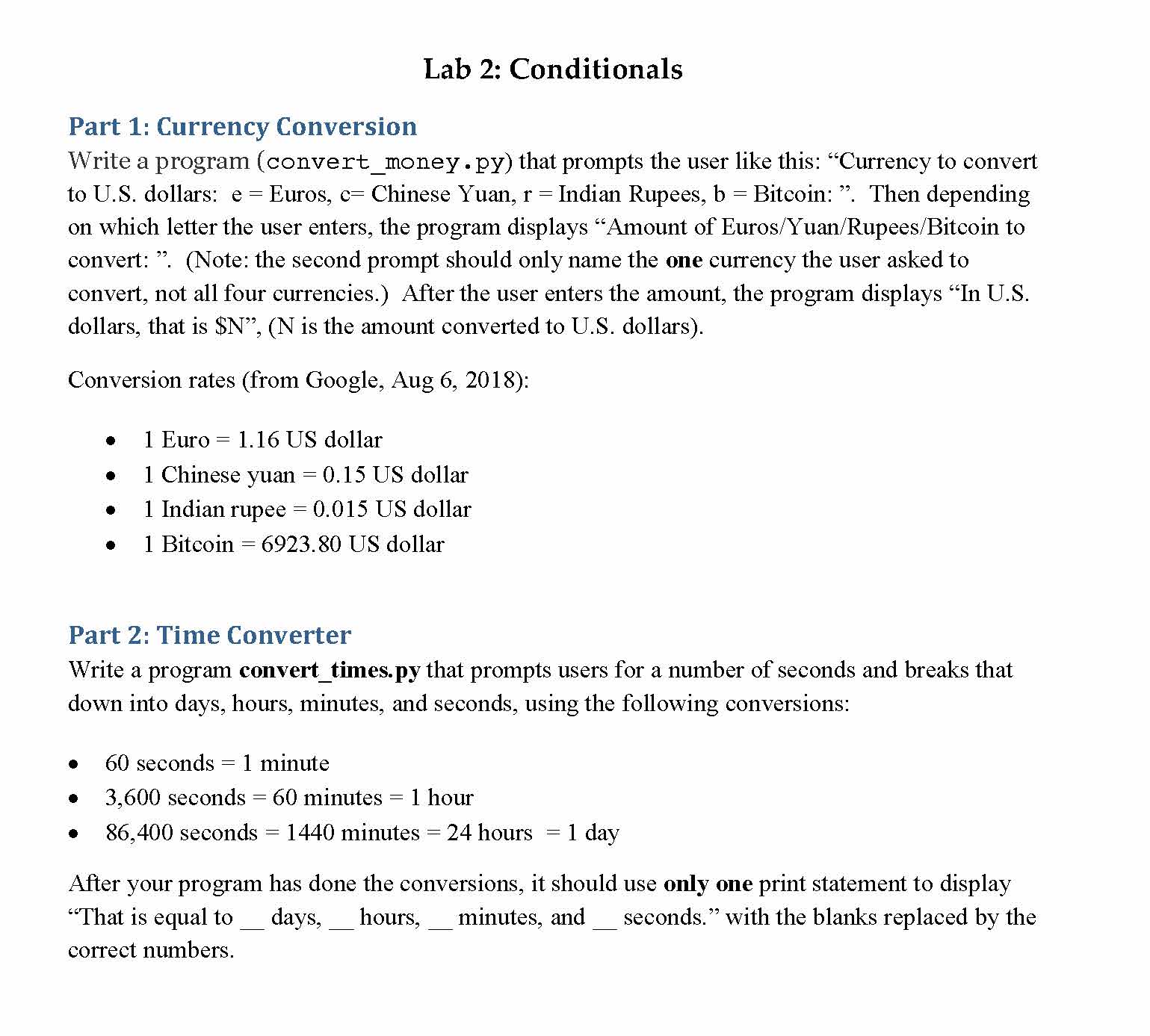 Lab 2: Conditionals Part 1: Currency Conversion Write a program...