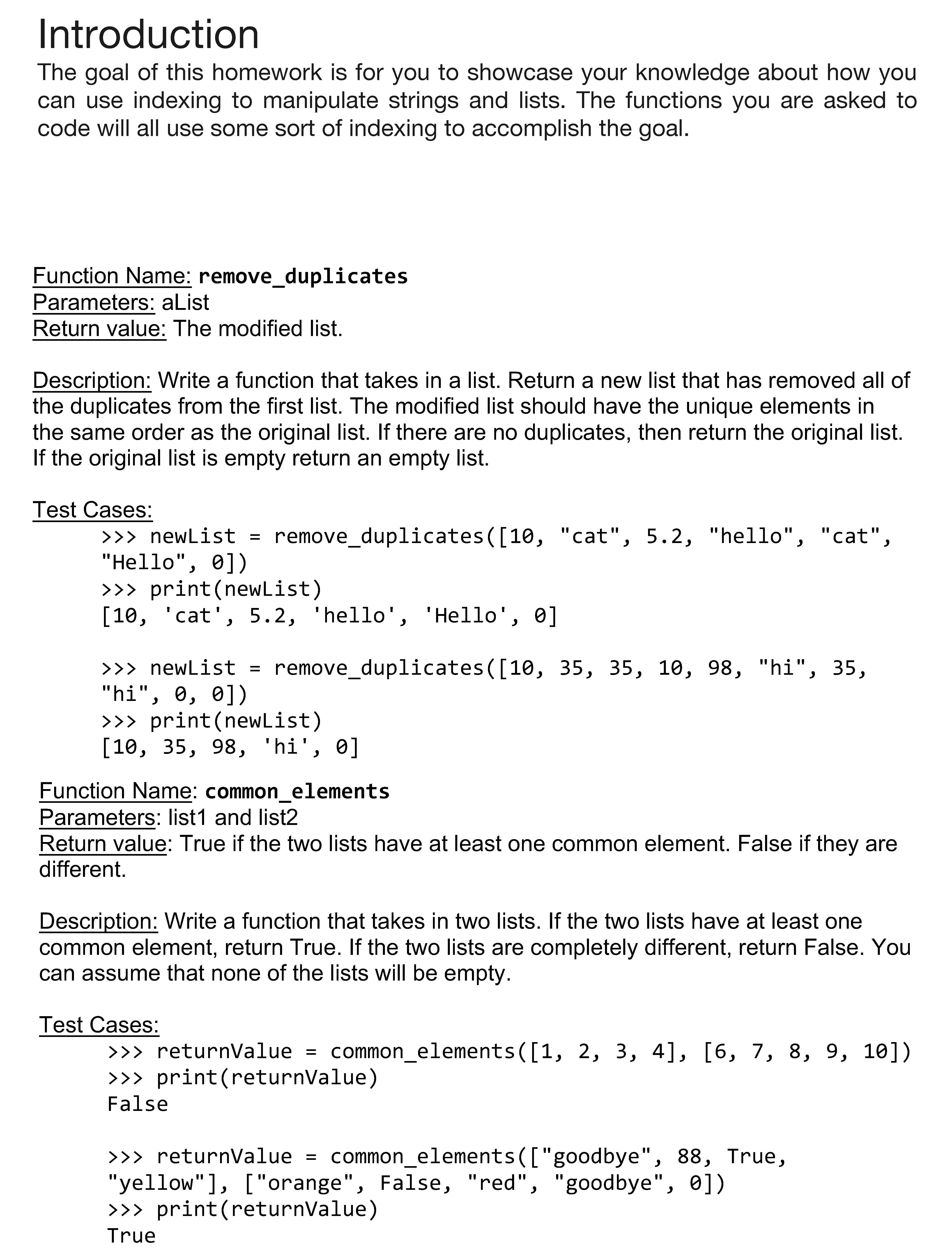 Function Name: remove_duplicates Parameters: aList Return value:...