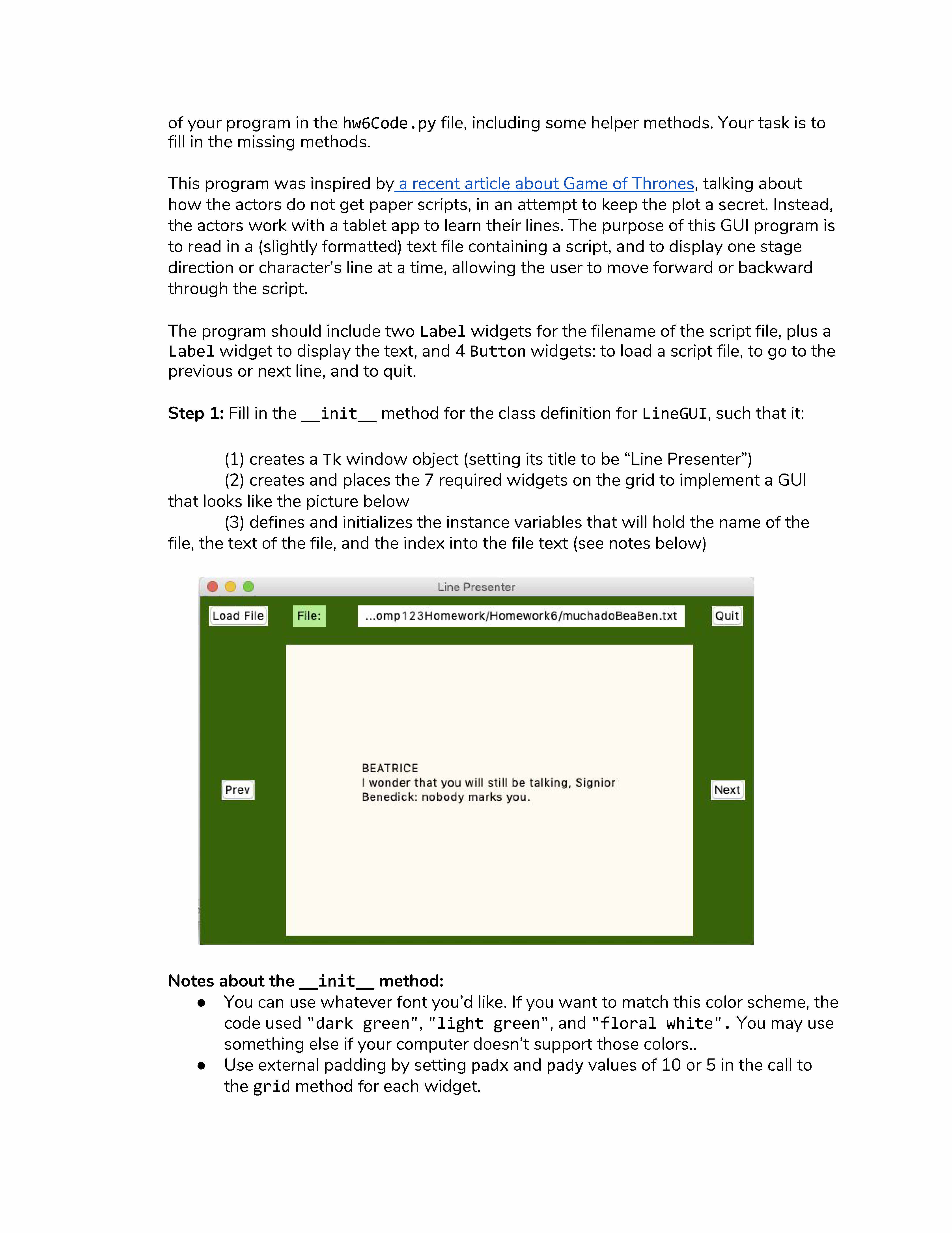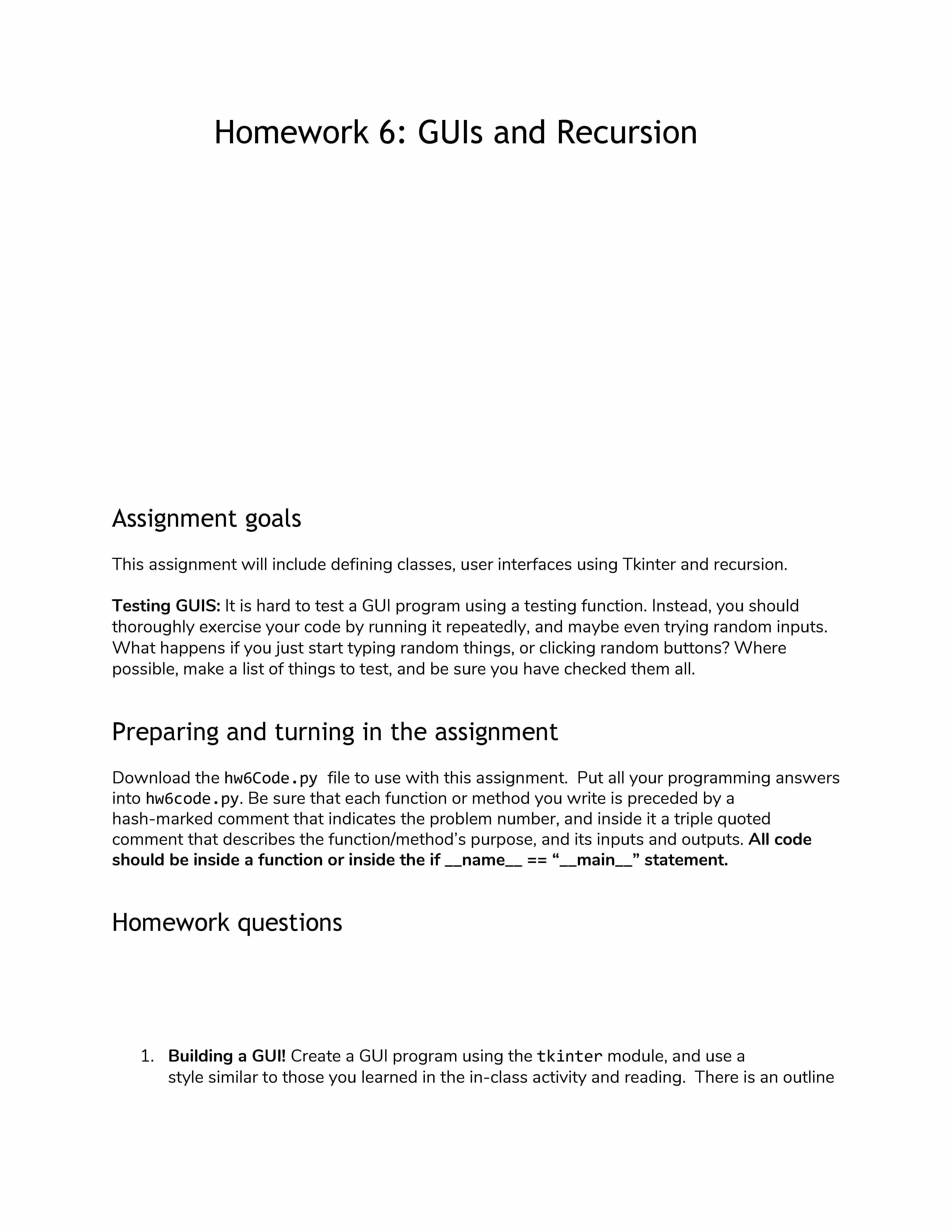 Homework 6: GUIs and Recursion Assignment goals This assignment...