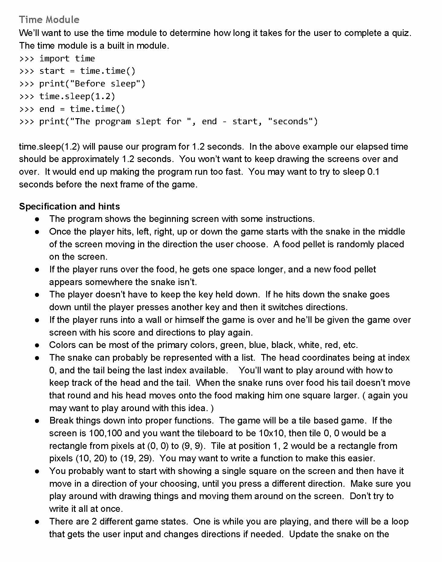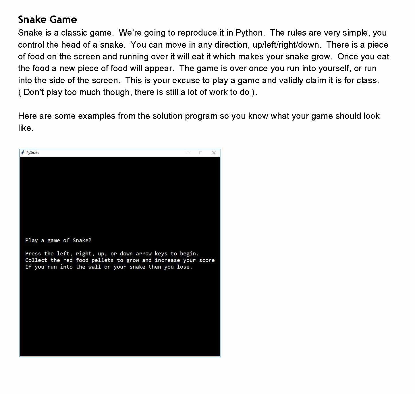 Snake Game Snake is a classic game. We’re going to reproduce it...