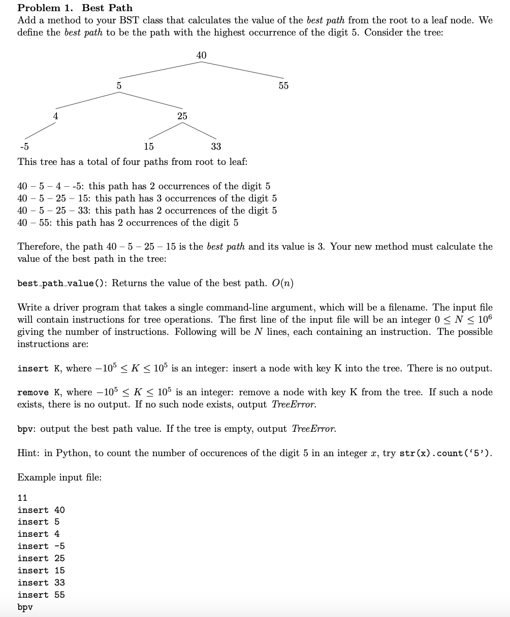 Problem 1. Best Path Add a method to your BST class that calculate...