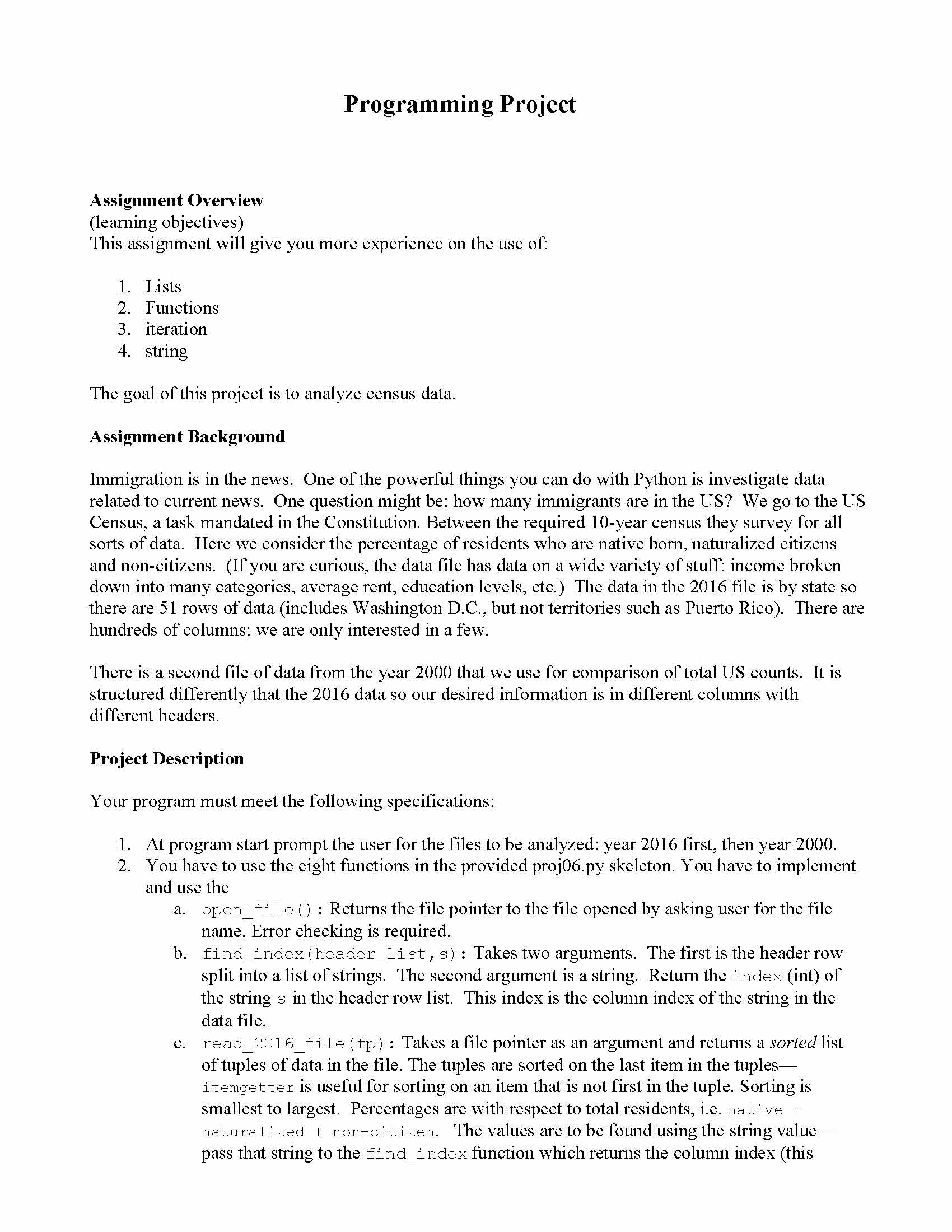 Programming Project Assignment Overview (learning objectives) Th...