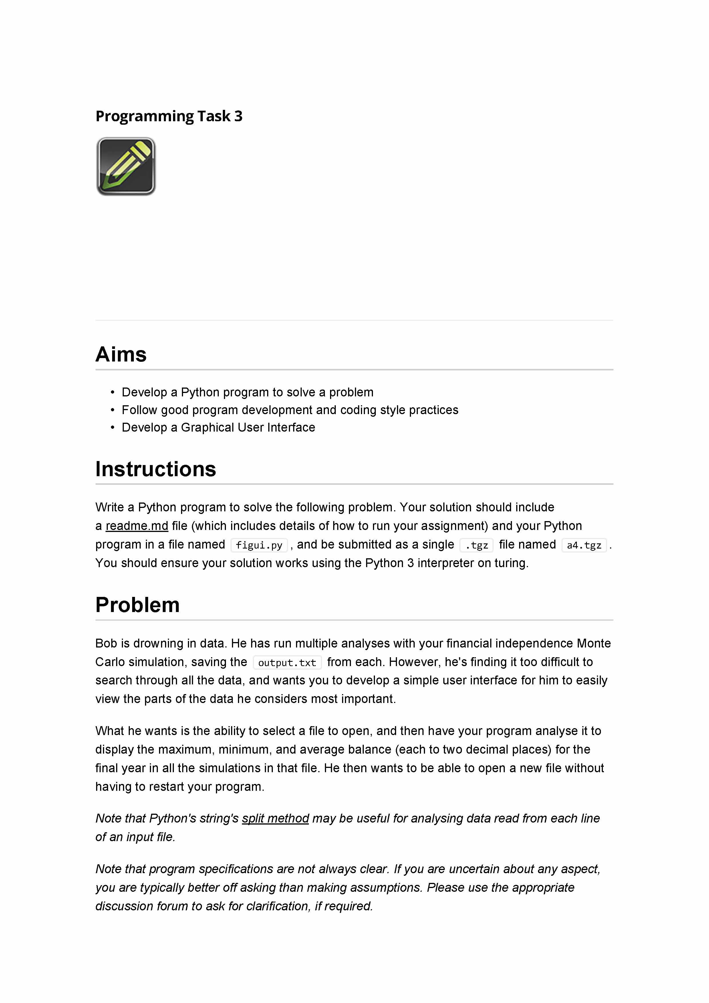 Programming Task 3 • Develop a Python program to solve a problem...