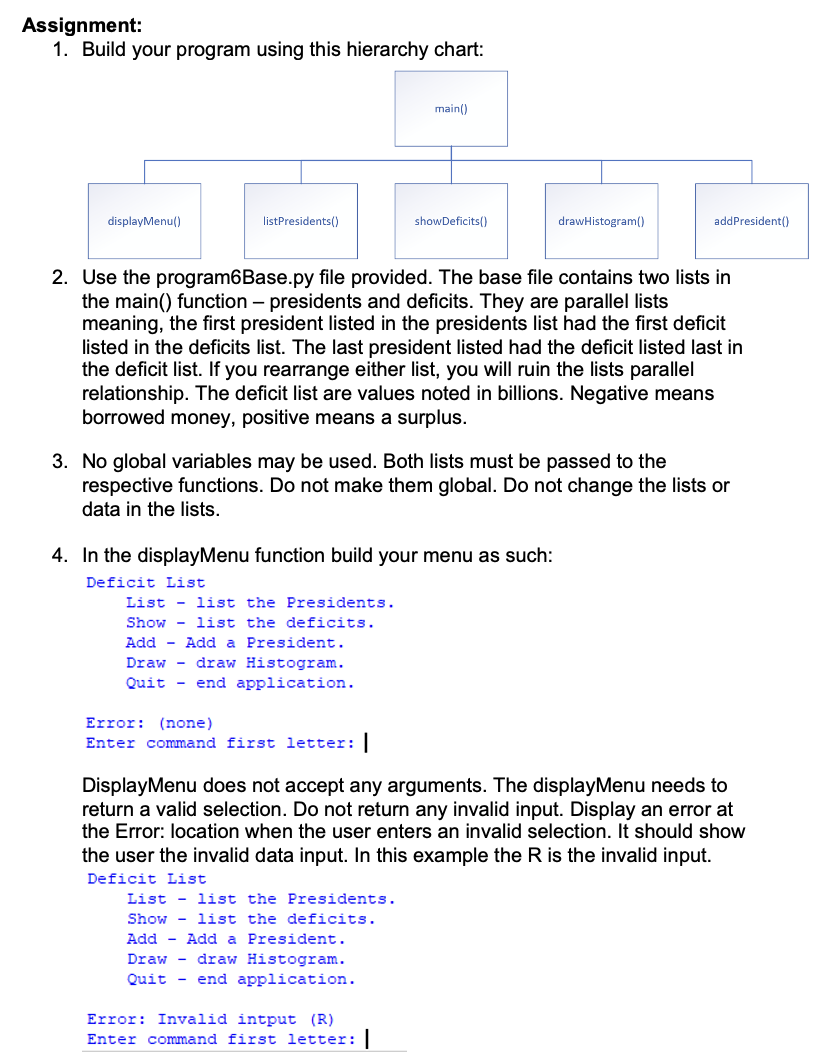 Assignment: 1. Build your program using this hierarchy chart: mai...