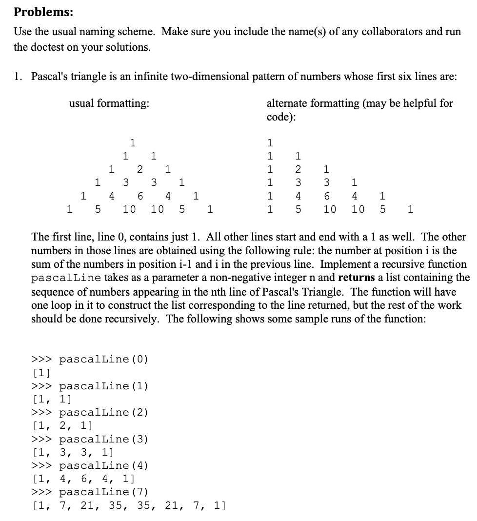 Problems: Use the usual naming scheme. Make sure you include the n...