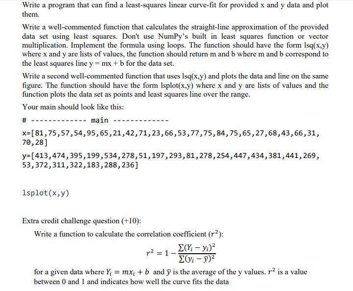Write a program that can find a least-squares linear curve-fit for ...