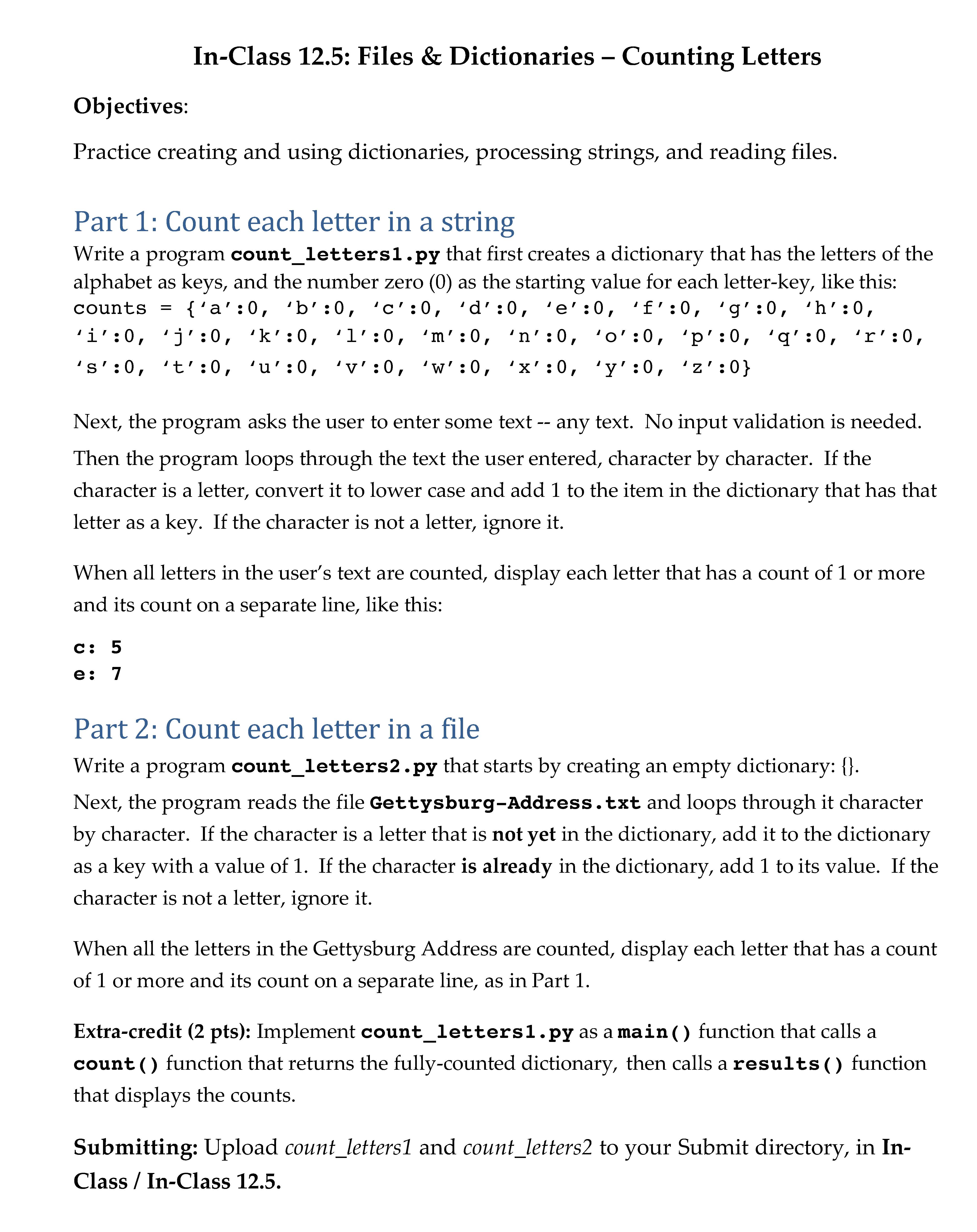 In-Class 12.5: Files & Dictionaries – Counting Letters ...